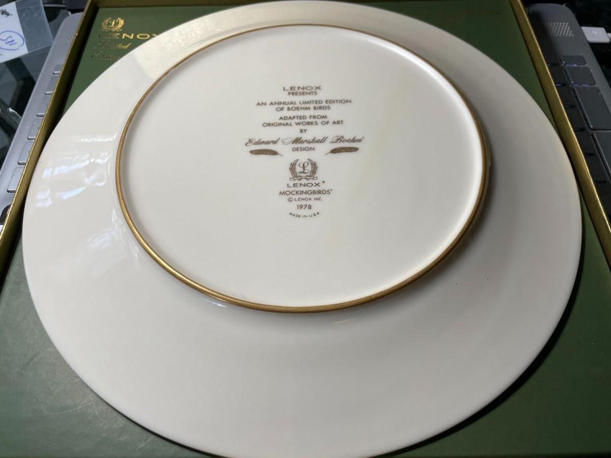 Vintage Lenox Annual Boehm Birds Porcelain Plate 1978 Mockingbird Plate 10.5" in Original Box as Pictured.