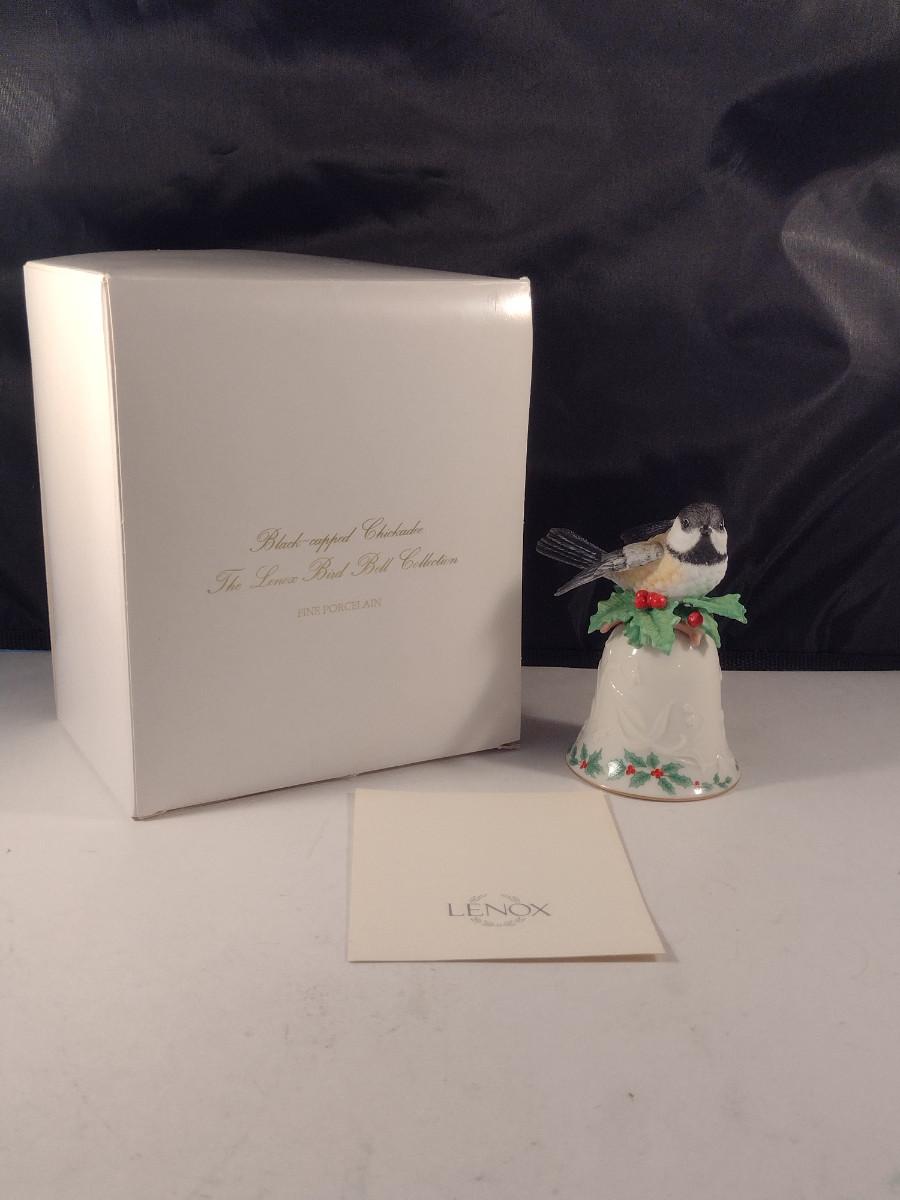 Vintage Lenox Black-capped Chickadee Porcelain Bell. Original box included.