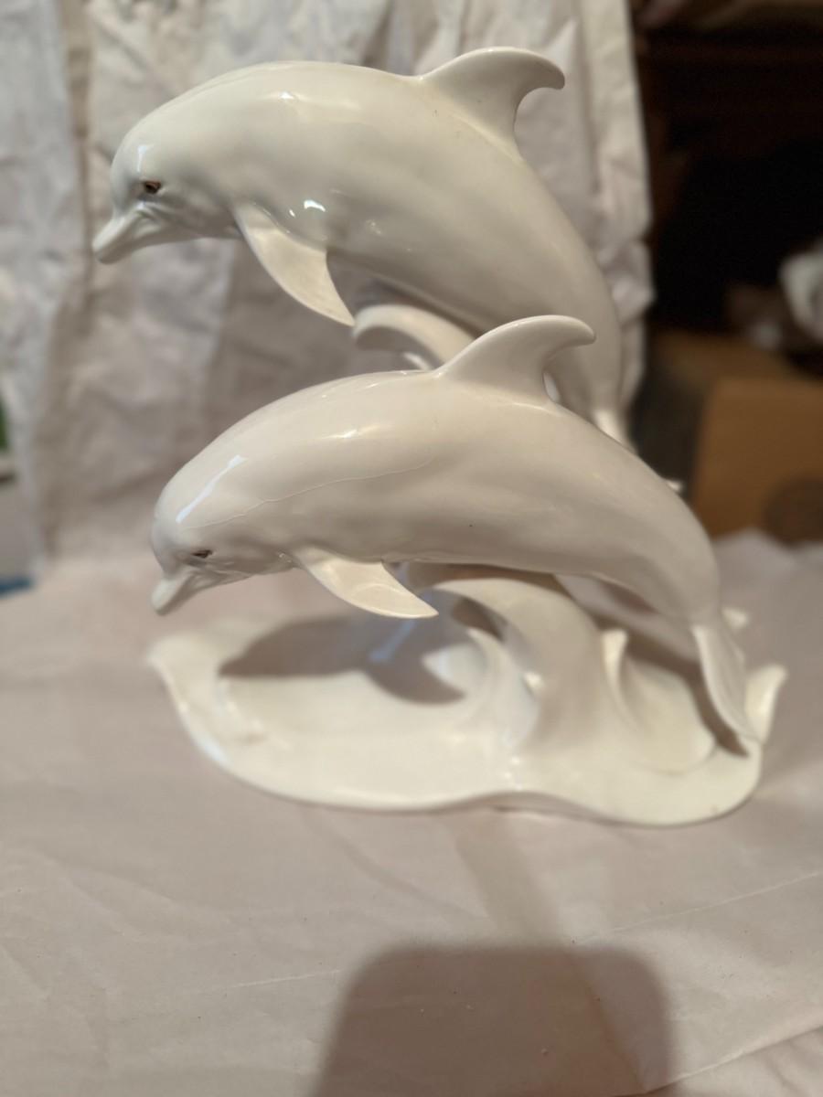 Vintage Lenox Dance of the Dolphins Figurine: This exquisite matte white fine bone china figure captures the joy of dolphins, adding elegance to any collection.
