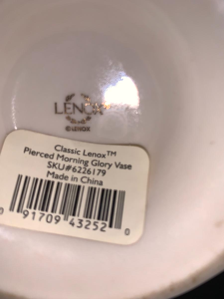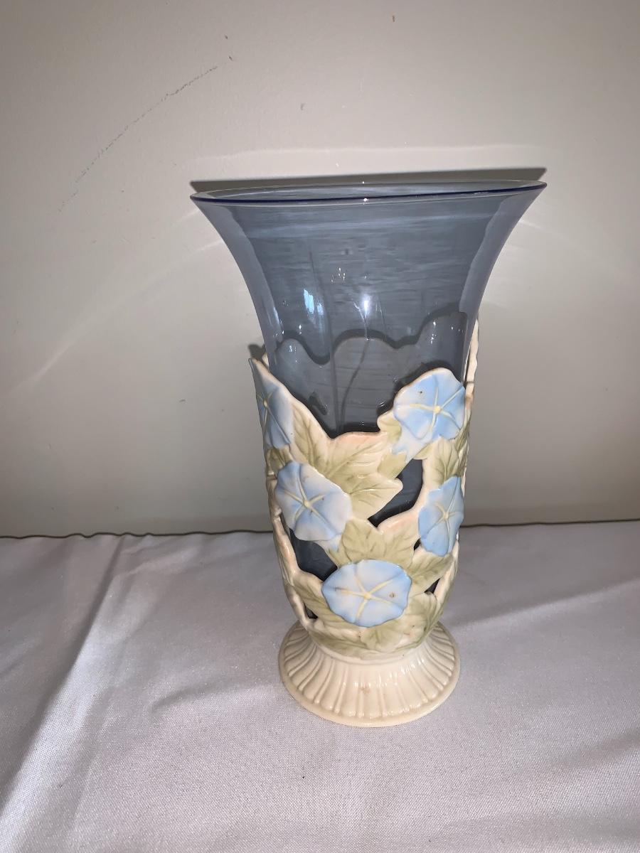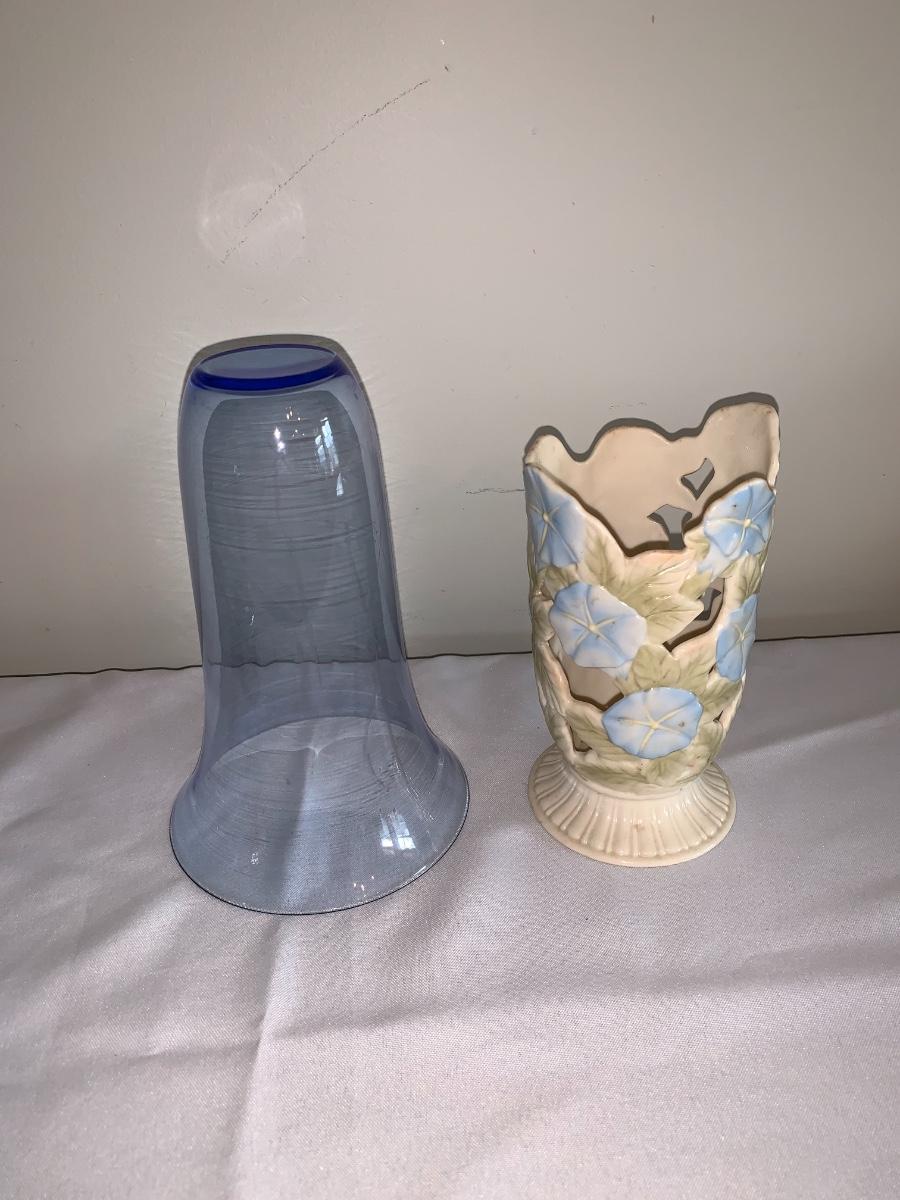 Lenox Morning Glory Vase Pierced Classic Porcelain Cream With Blue Glass Insert