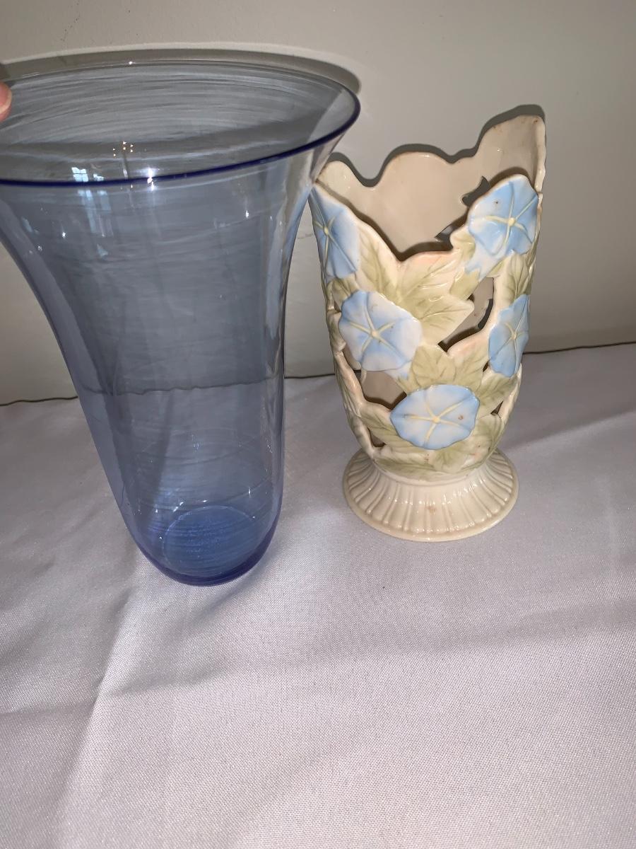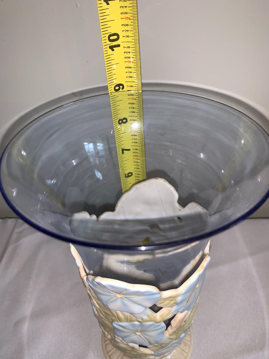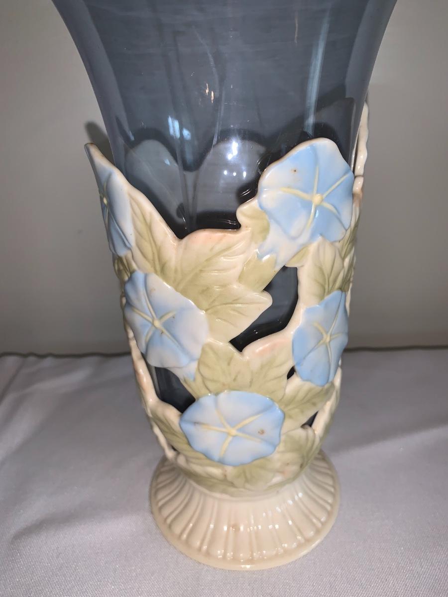 Lenox Morning Glory Vase Pierced Classic Porcelain Cream With Blue Glass Insert