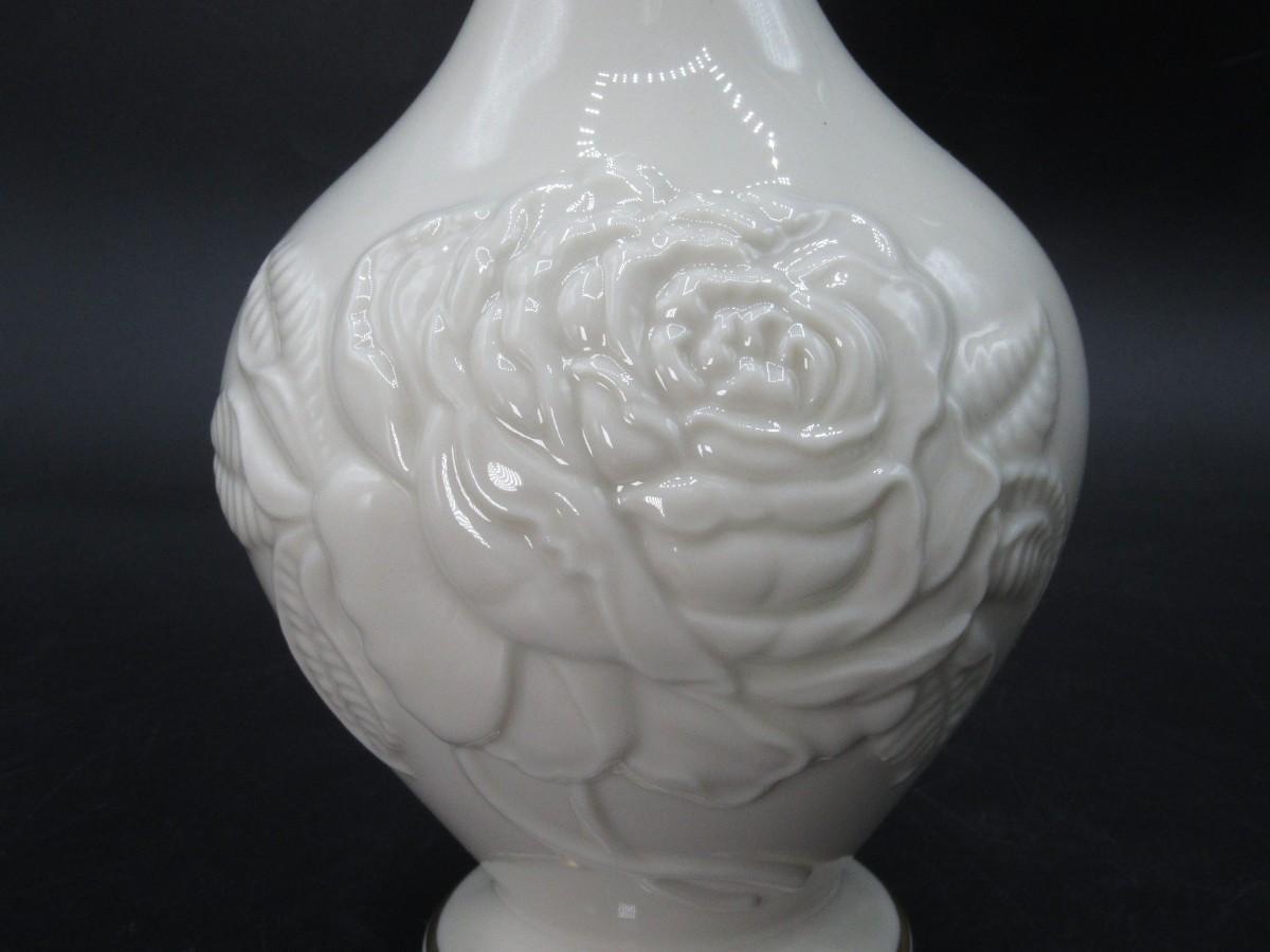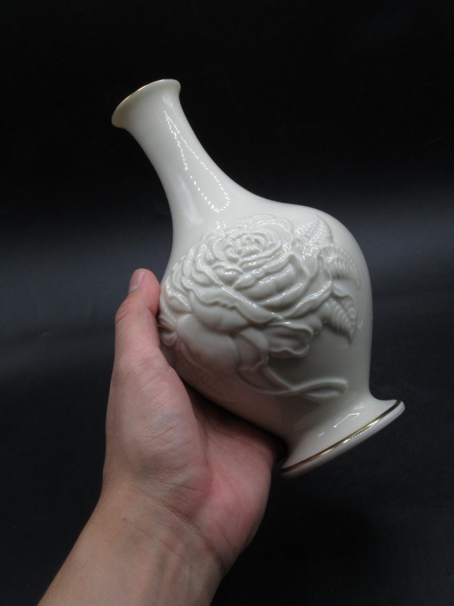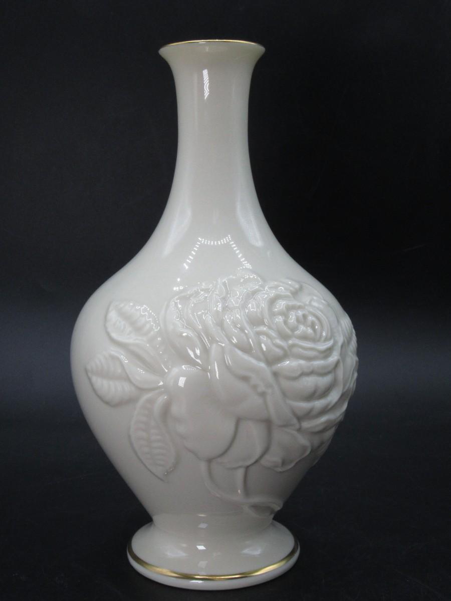 Vintage Lenox Embossed Rose White Porcelain Flower Bud Vase Gilded with Gold Edge