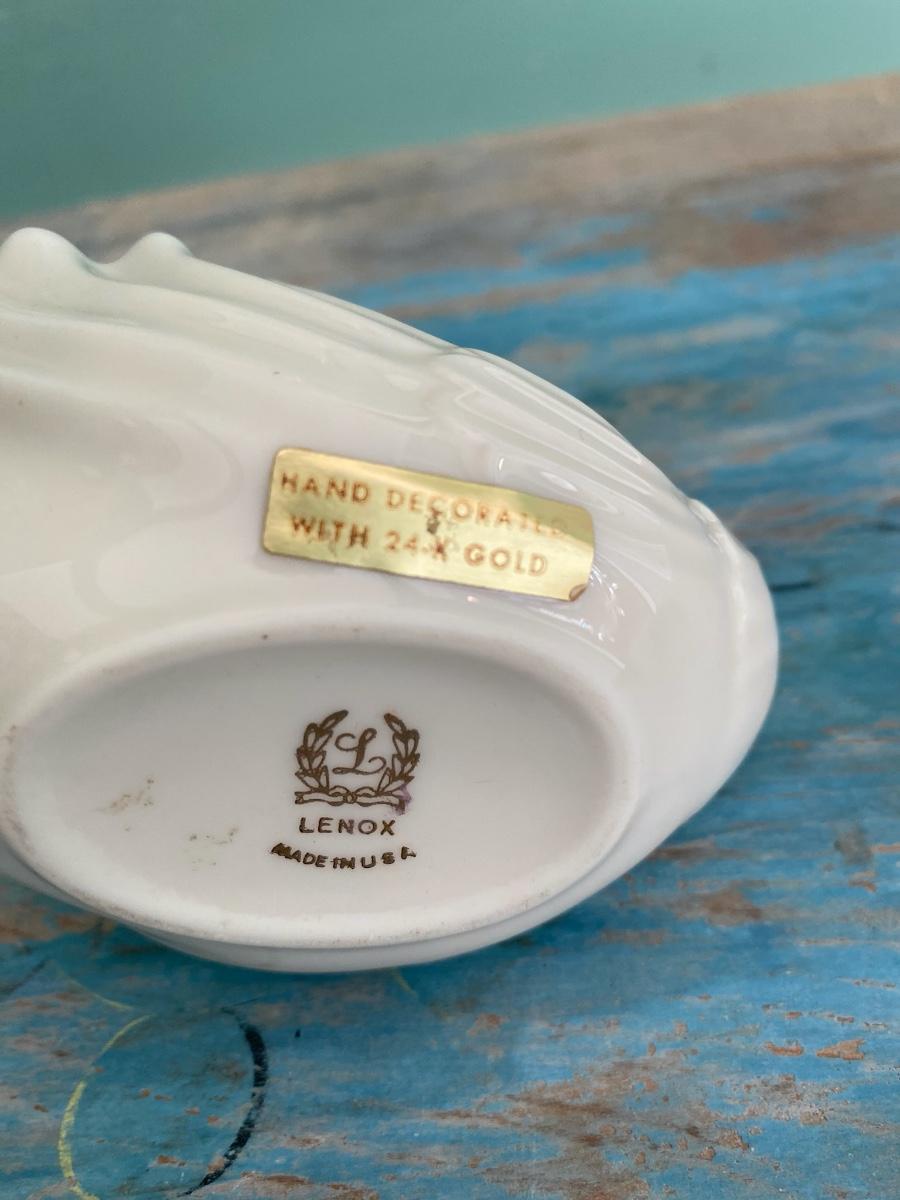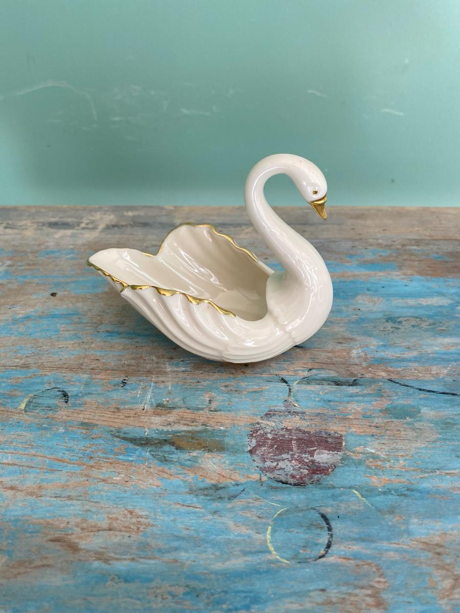 Vintage Lenox Swan Dish with 14 K gold