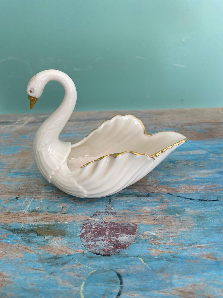 Vintage Lenox Swan Dish with 14 K gold