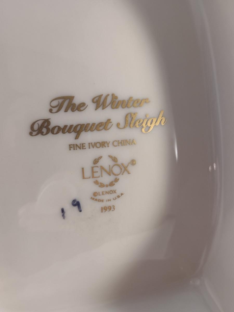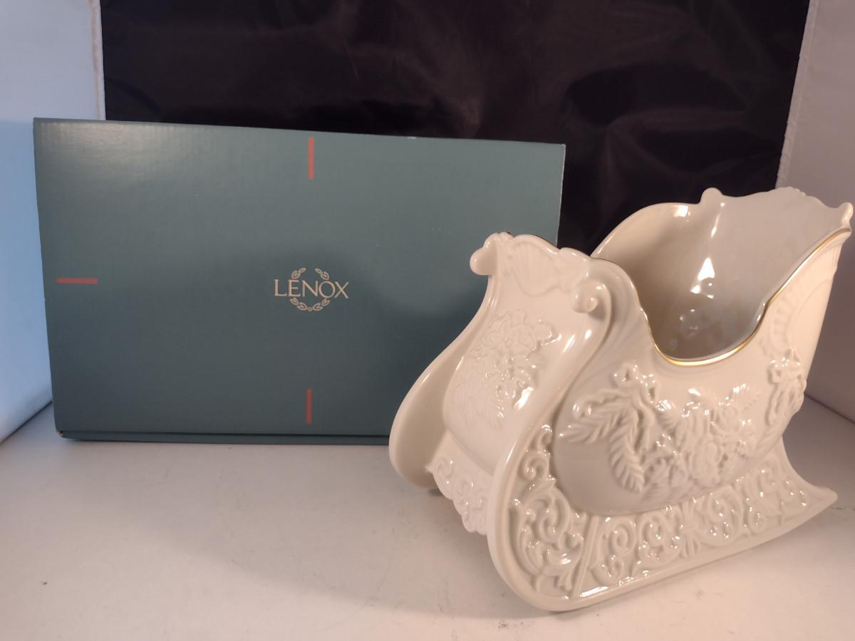 Vintage Lenox USA Porcelain 'The Winter Bouquet Sleigh'. Original box included.