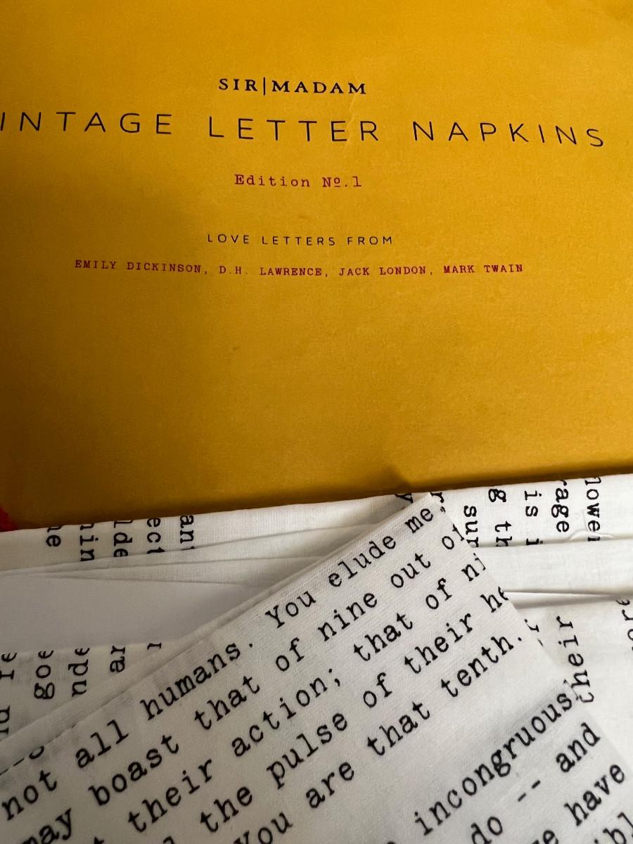 Vintage Letter Napkins - 2 sets of 4, new in the package