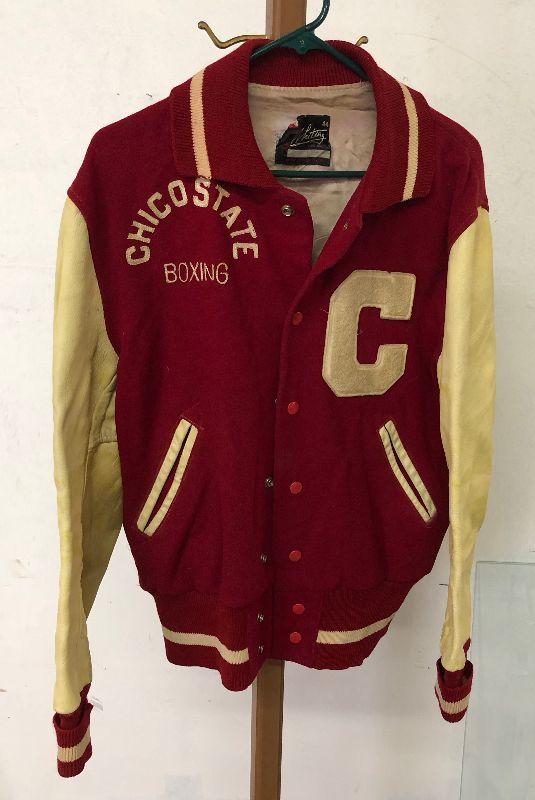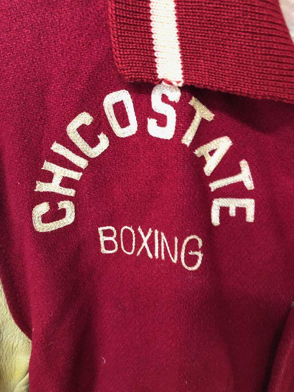 Here is a vintage letterman's jacket from a member of the boxing team of Chico State College in Cailfornia...Some normal use....Size 44...