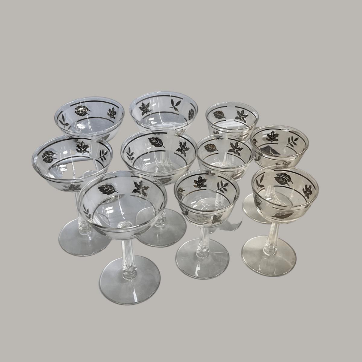 Vintage Libby Glass Company Silver Leaf Glass Set of 10
