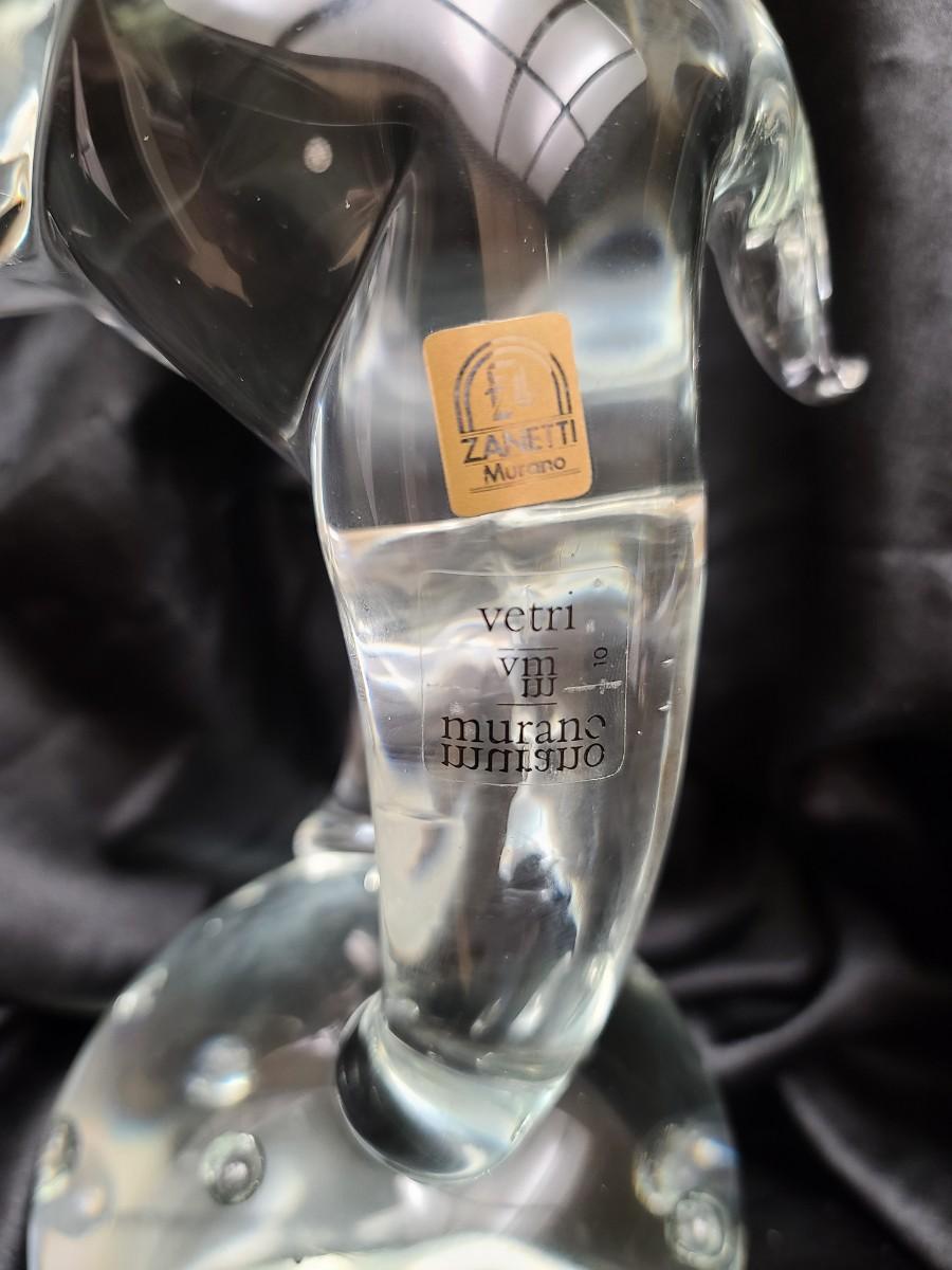 Marked with the authentic Zanetti Murano foil label and the etched signature Vetri Murano VM, this sculpture represents not just craftsmanship, but legacy. The clear, flawless glass refracts light with remarkable purity, embodying both luxury and symbolism—the elephant, an emblem of wisdom, good fortune, and prosperity, rendered here in the most luminous of materials.