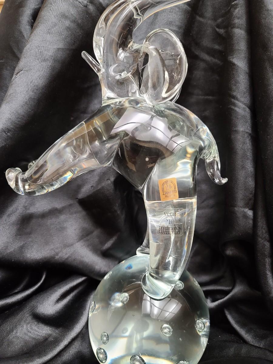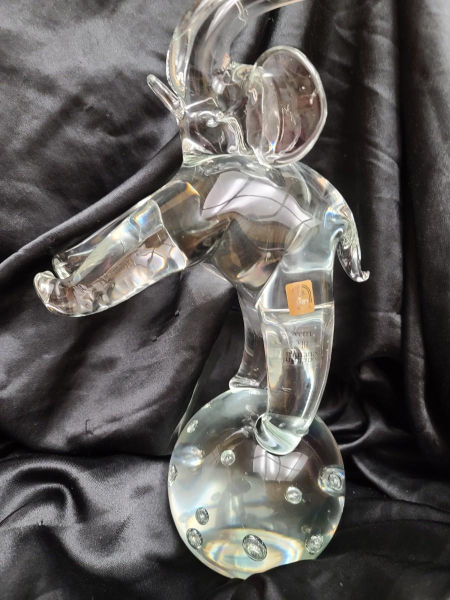 Marked with the authentic Zanetti Murano foil label and the etched signature Vetri Murano VM, this sculpture represents not just craftsmanship, but legacy. The clear, flawless glass refracts light with remarkable purity, embodying both luxury and symbolism—the elephant, an emblem of wisdom, good fortune, and prosperity, rendered here in the most luminous of materials.