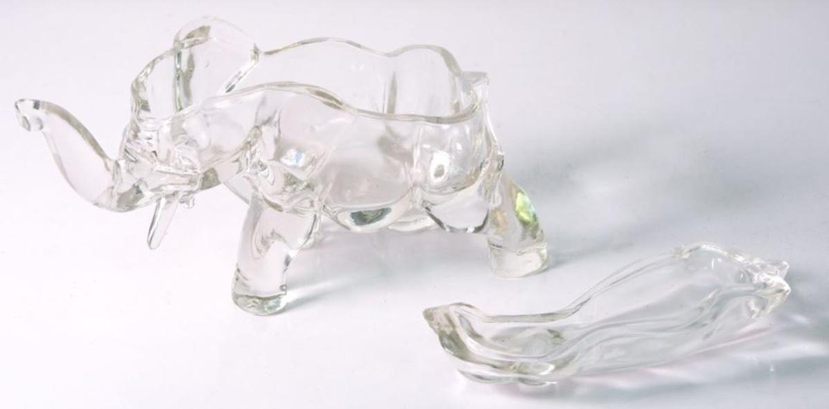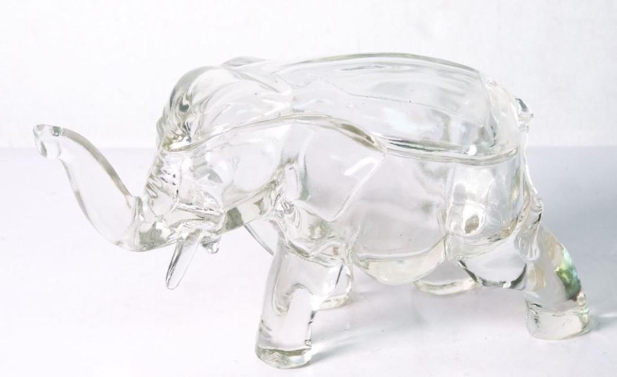 Vintage Lidded Glass Elephant Candy Dish