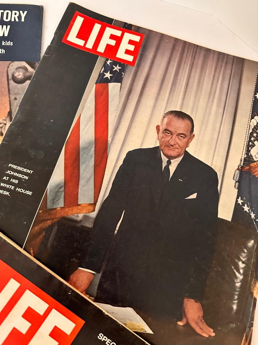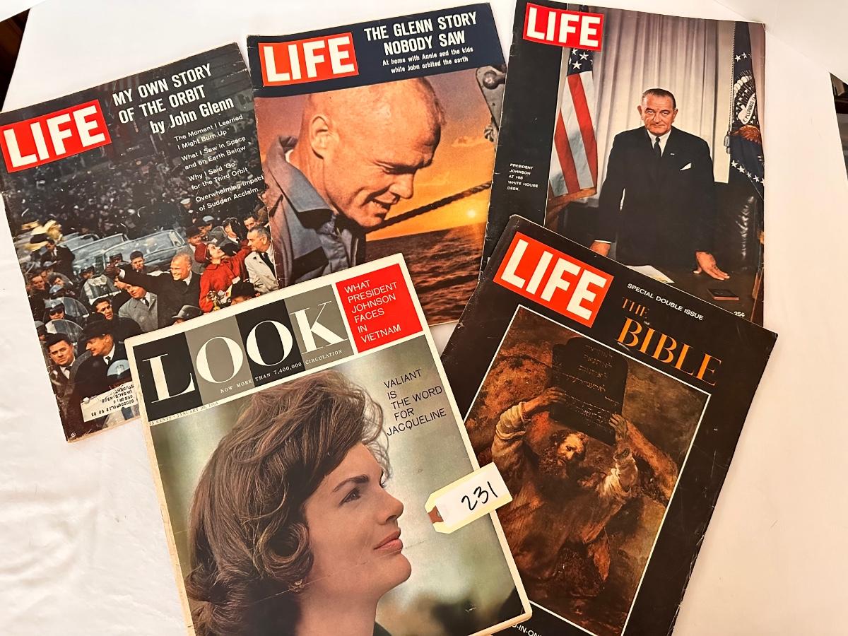 VINTAGE LIFE AND LOOK MAGAZINE LOT, 1964, JACQUELINE KENNEDY, THE BIBLE, PRESIDENT JOHNSON, JOHN GLYNN AS PICTURED