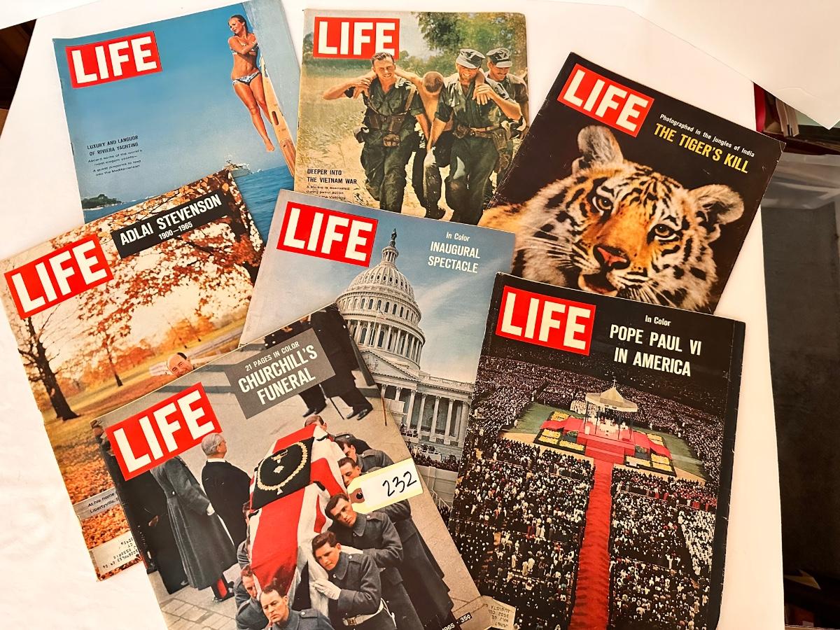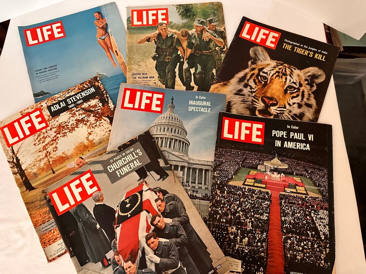 VINTAGE LIFE MAGAZINE LOT, 1965, CHURCHILL'S FUNERAL, POPE VIUAL, INAGURAL SPECTICLE, ADALI STEVENSON, THE TIGERS KILL, VIETNAM WAR, YACHTING AS PICTURED