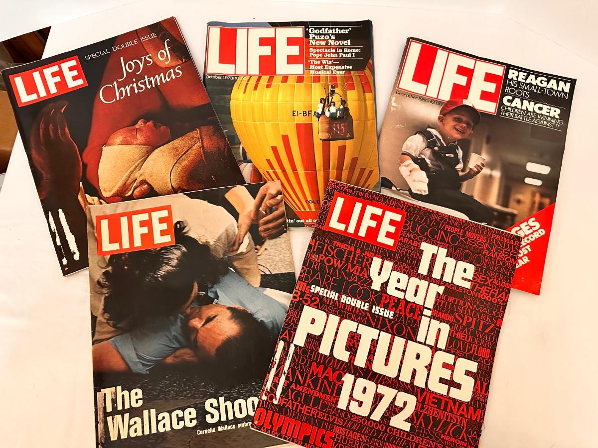 VINTAGE LIFE MAGAZINE LOT 1972-1980 THE YEAR IN PICTURES 1972, THE WALLACE SHOOTING 1972, JOYS OF CHRISTMAS 1972, PRESIDENT RAEGAN 1980, AS PICTURED