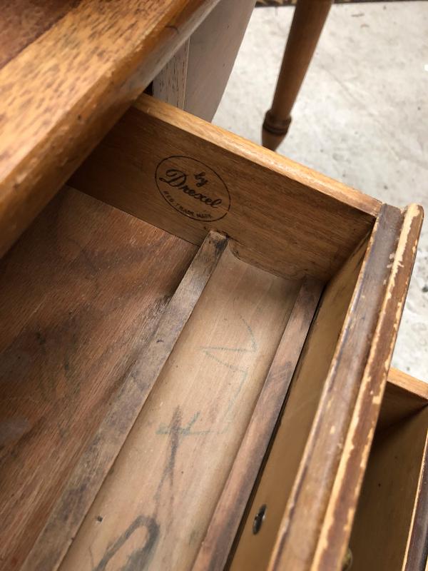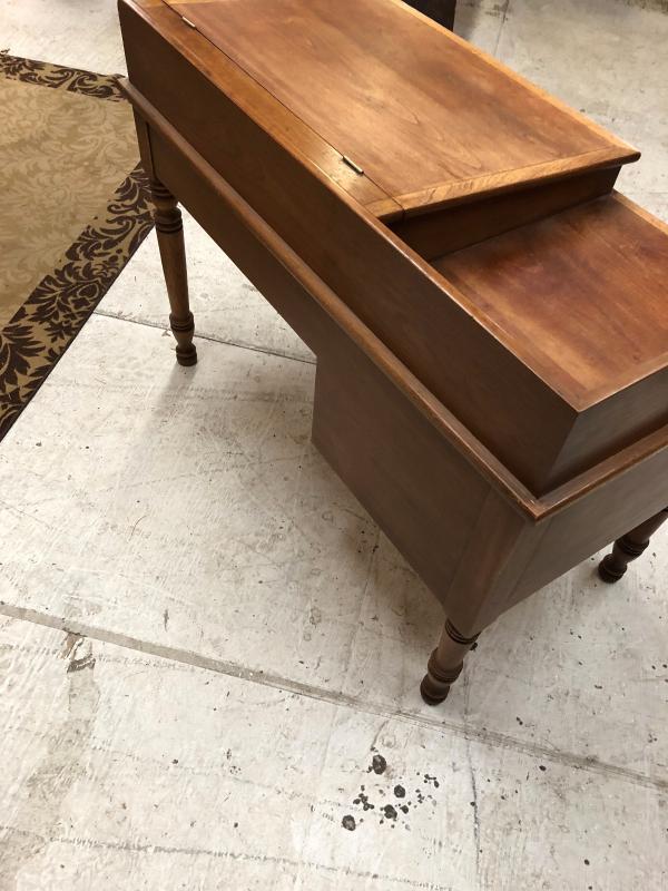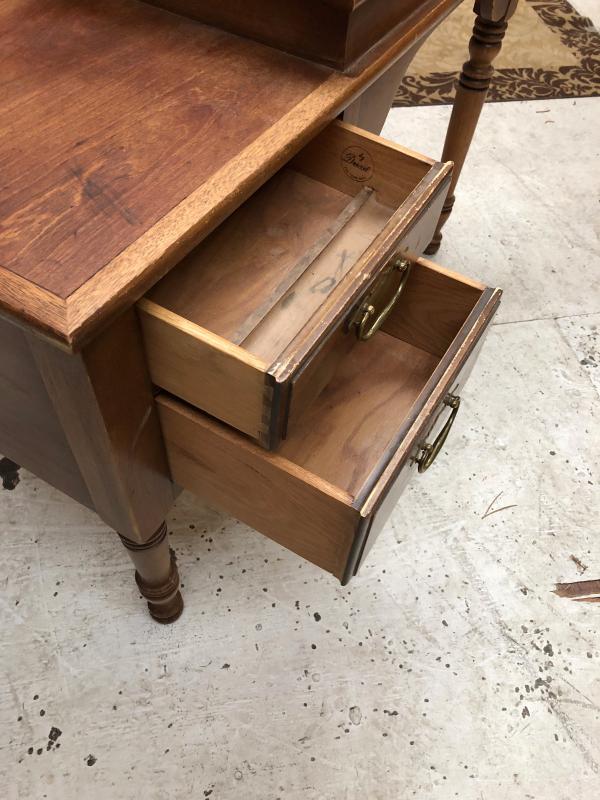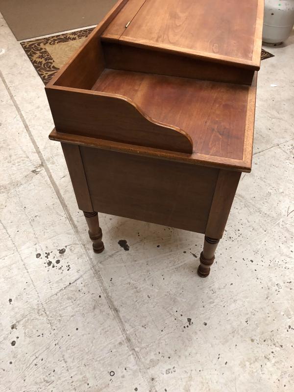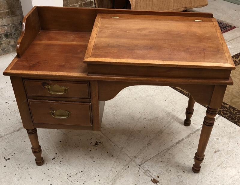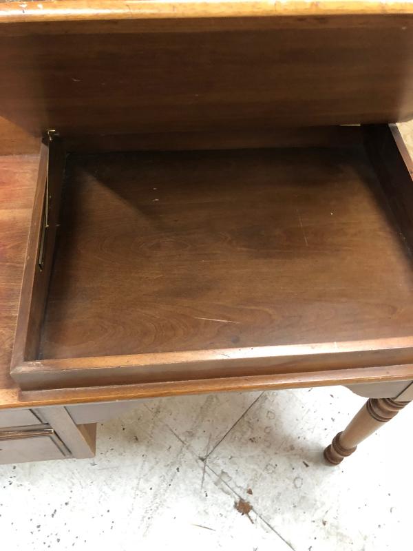 Vintage solid wood desk 43" x 22", one hinge needs screws.