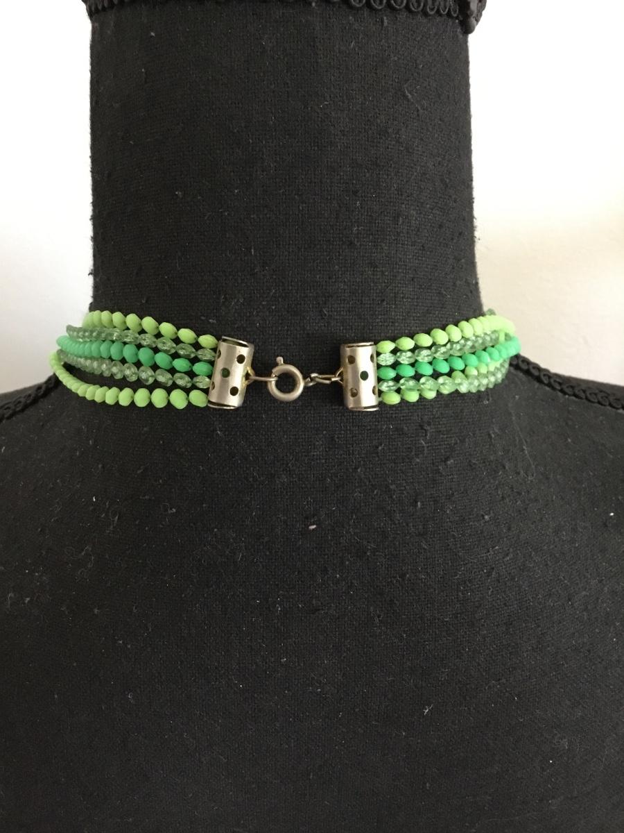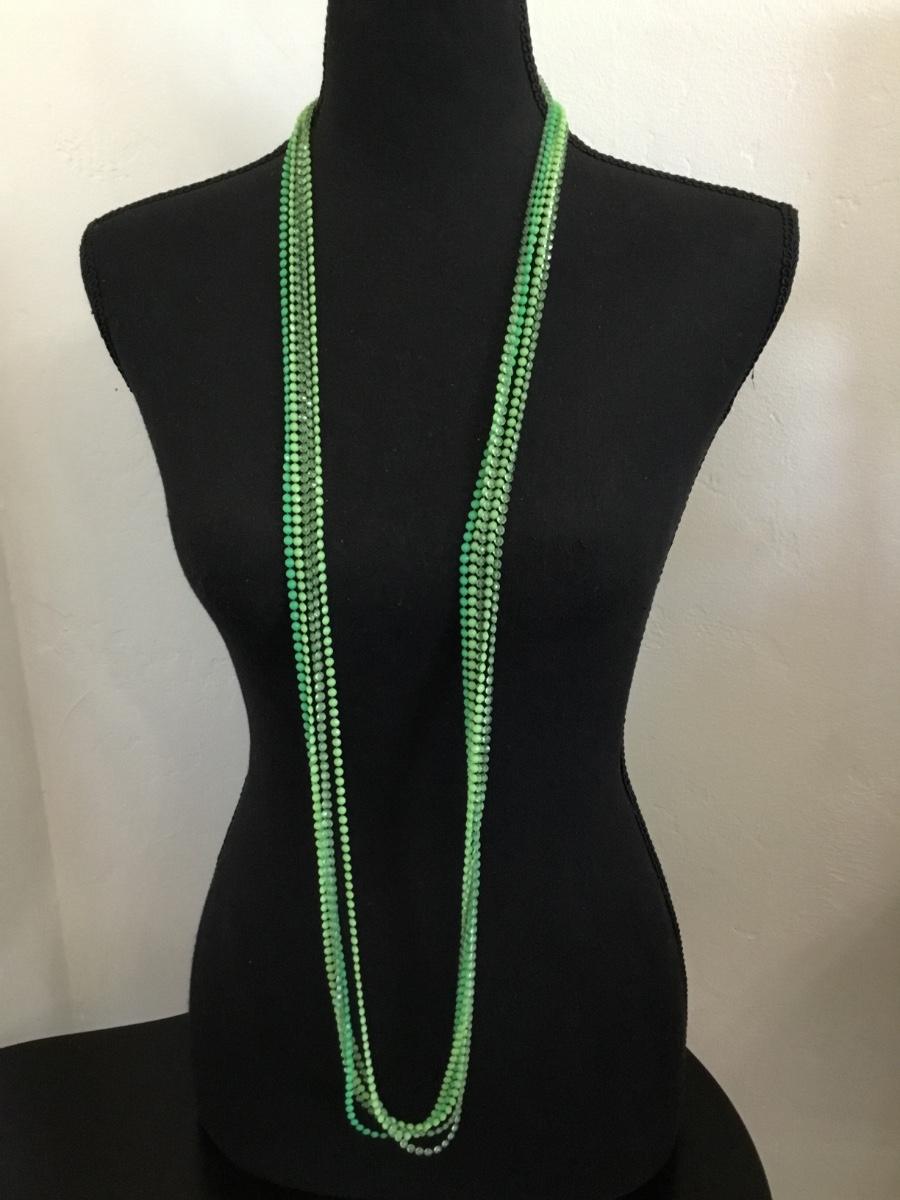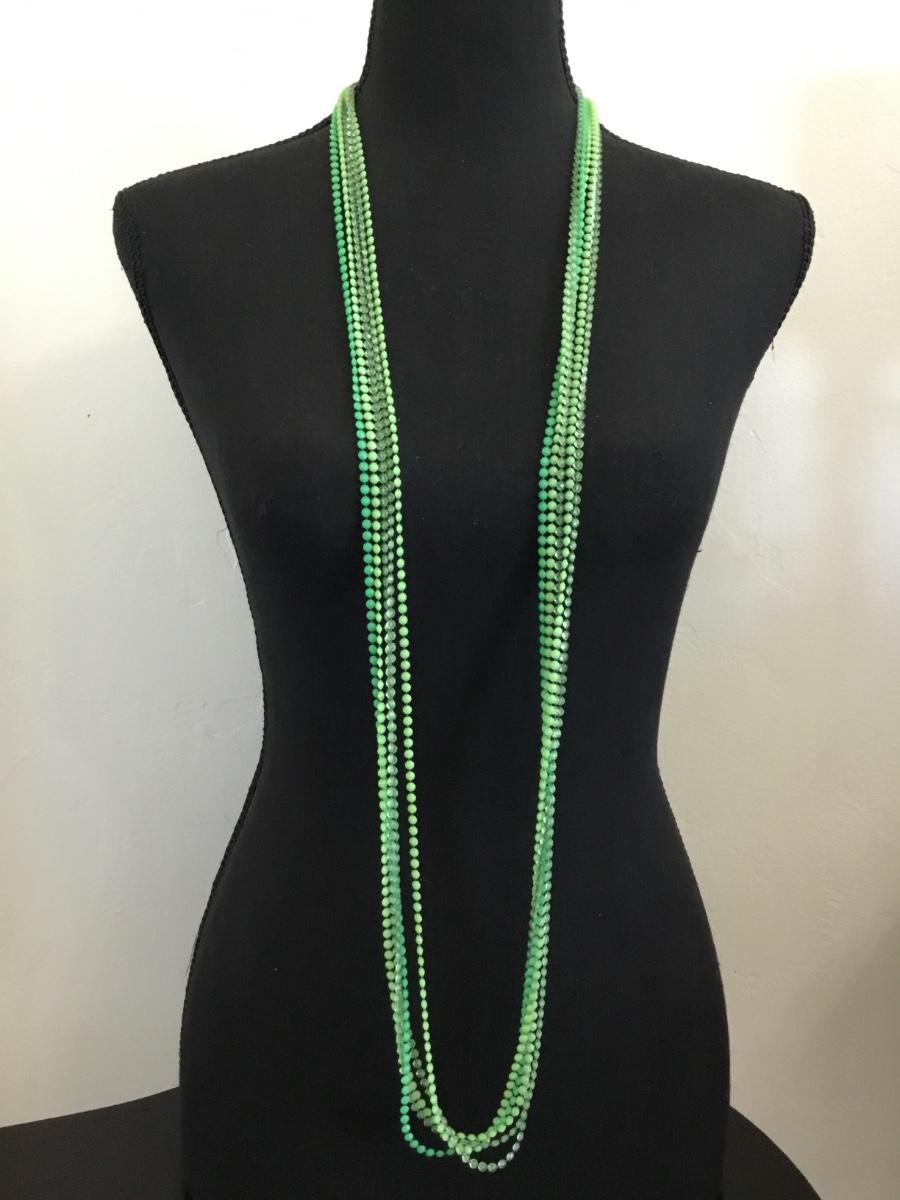 Vintage, light and dark green plastic Lucite tape bead, flapper style necklace