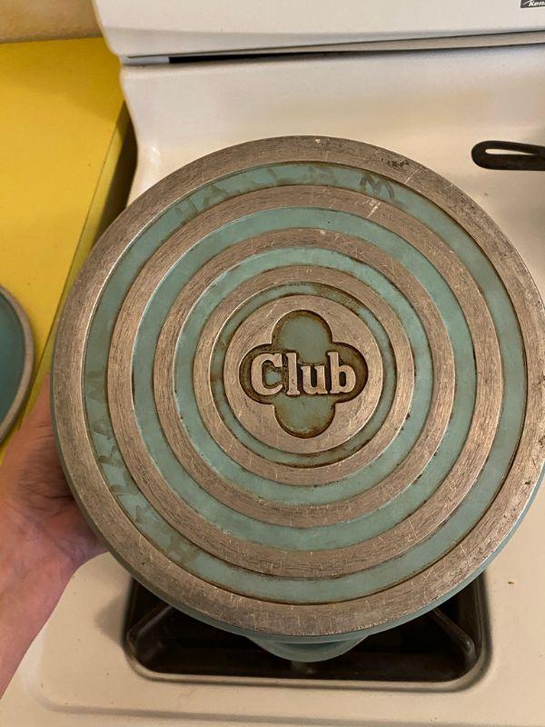 Vintage light blue Club brand aluminum dutch oven. Has signs of use, but not to bad.