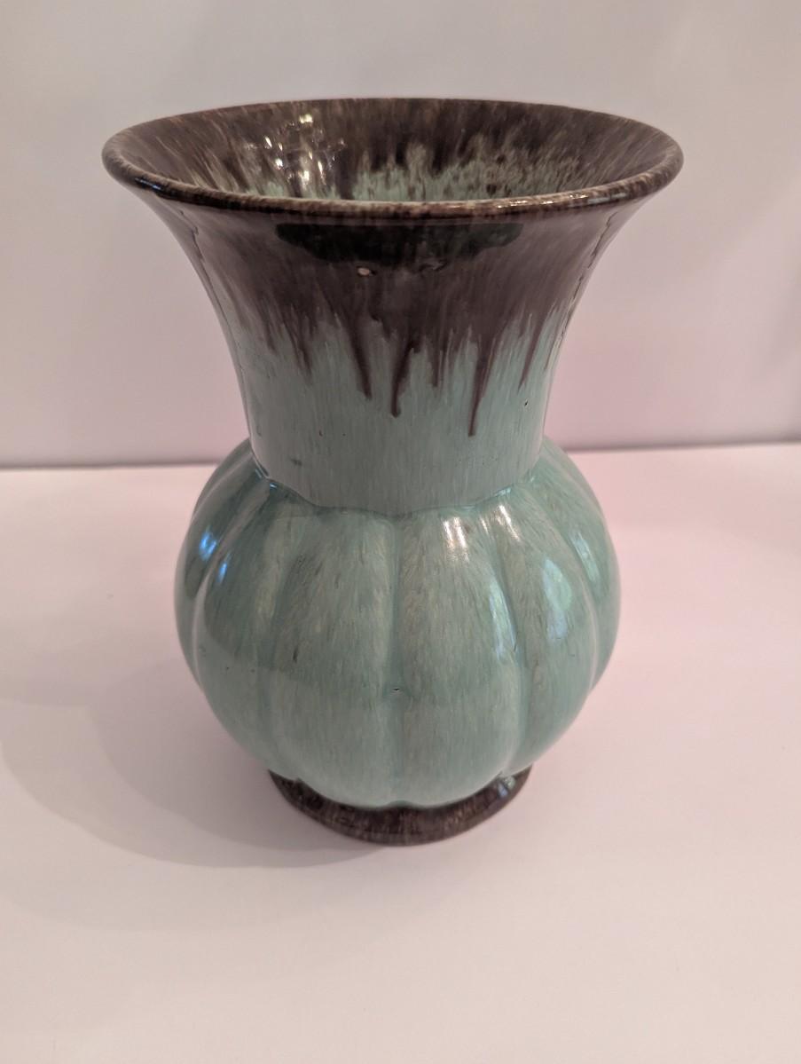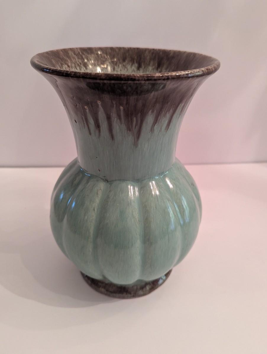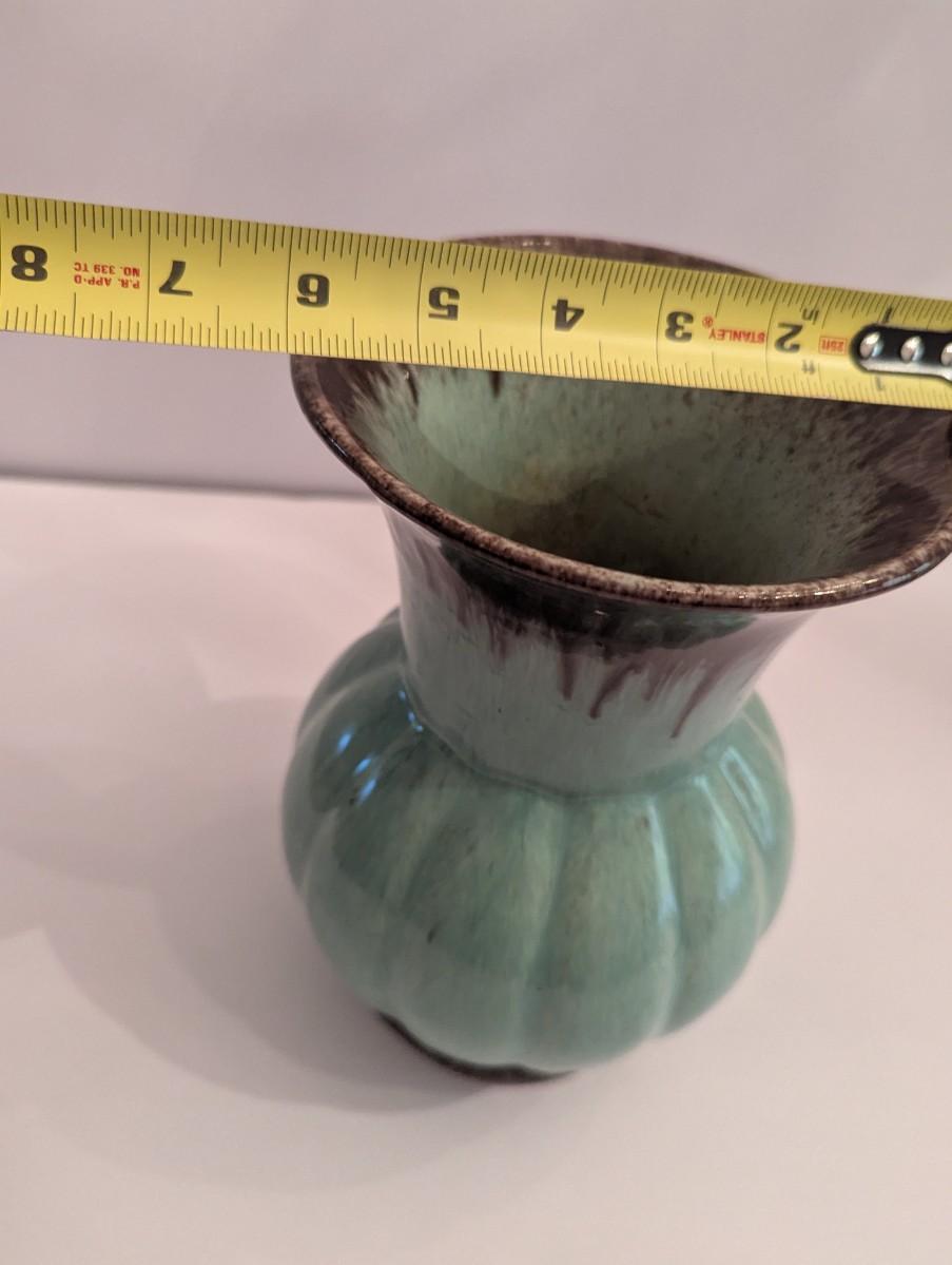 Marked Vintage Light Blue With Brown Details Vase