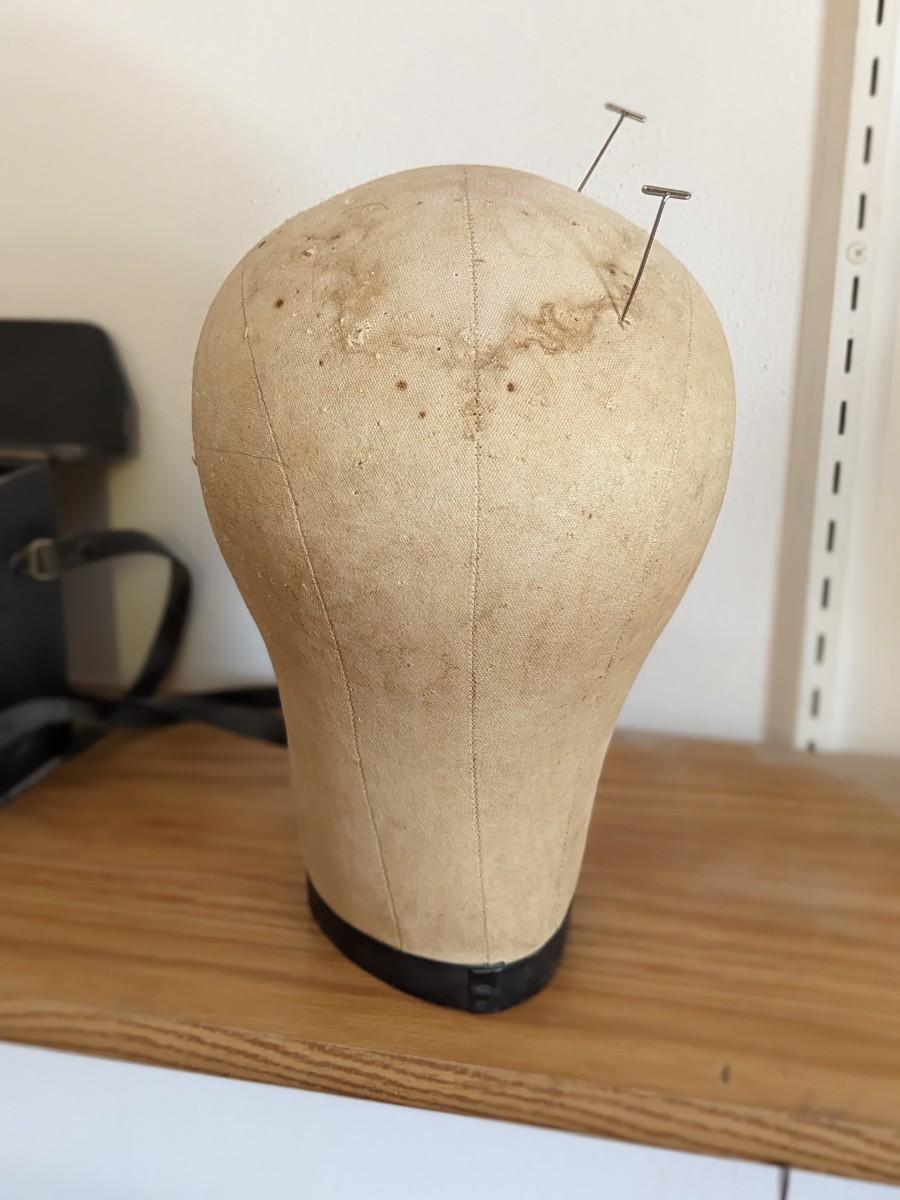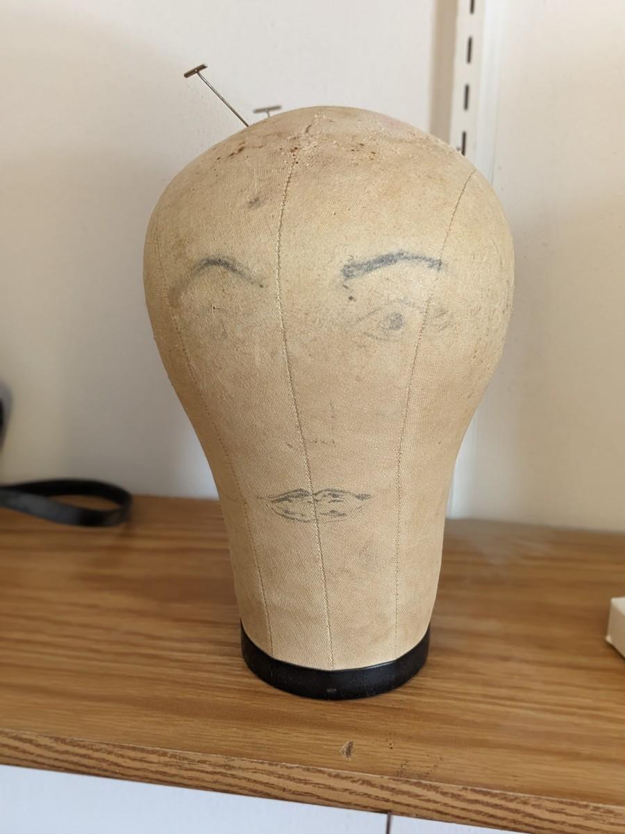Vintage LIGHT BROWN CANVAS MANNEQUIN WIG HAT HEAD STORE DISPLAY 22 1/2 Cir., 10”