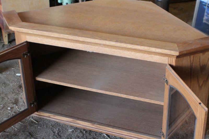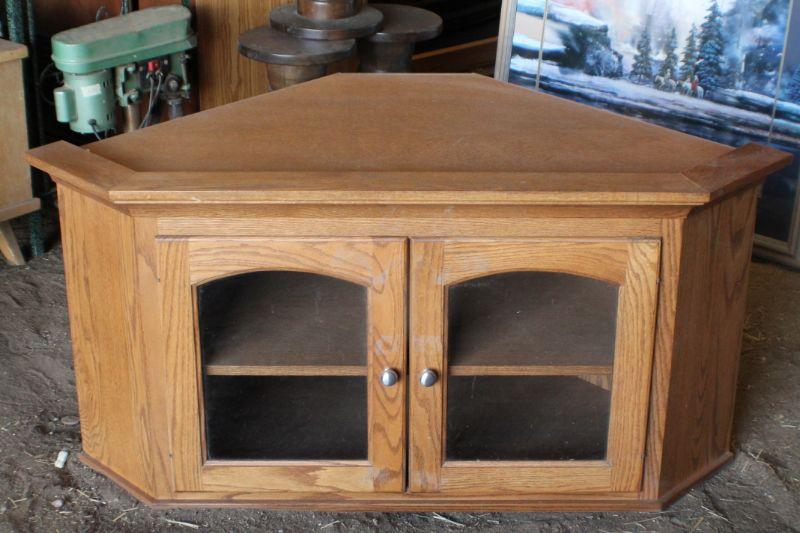 Lot #244: Vintage Light Oak Entertainment Corner Display Cabinet