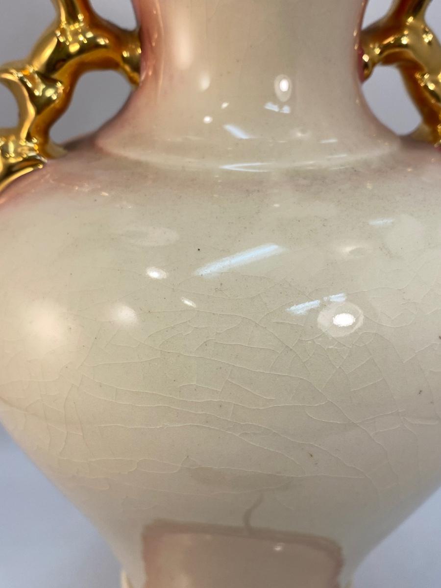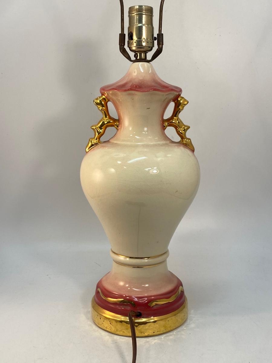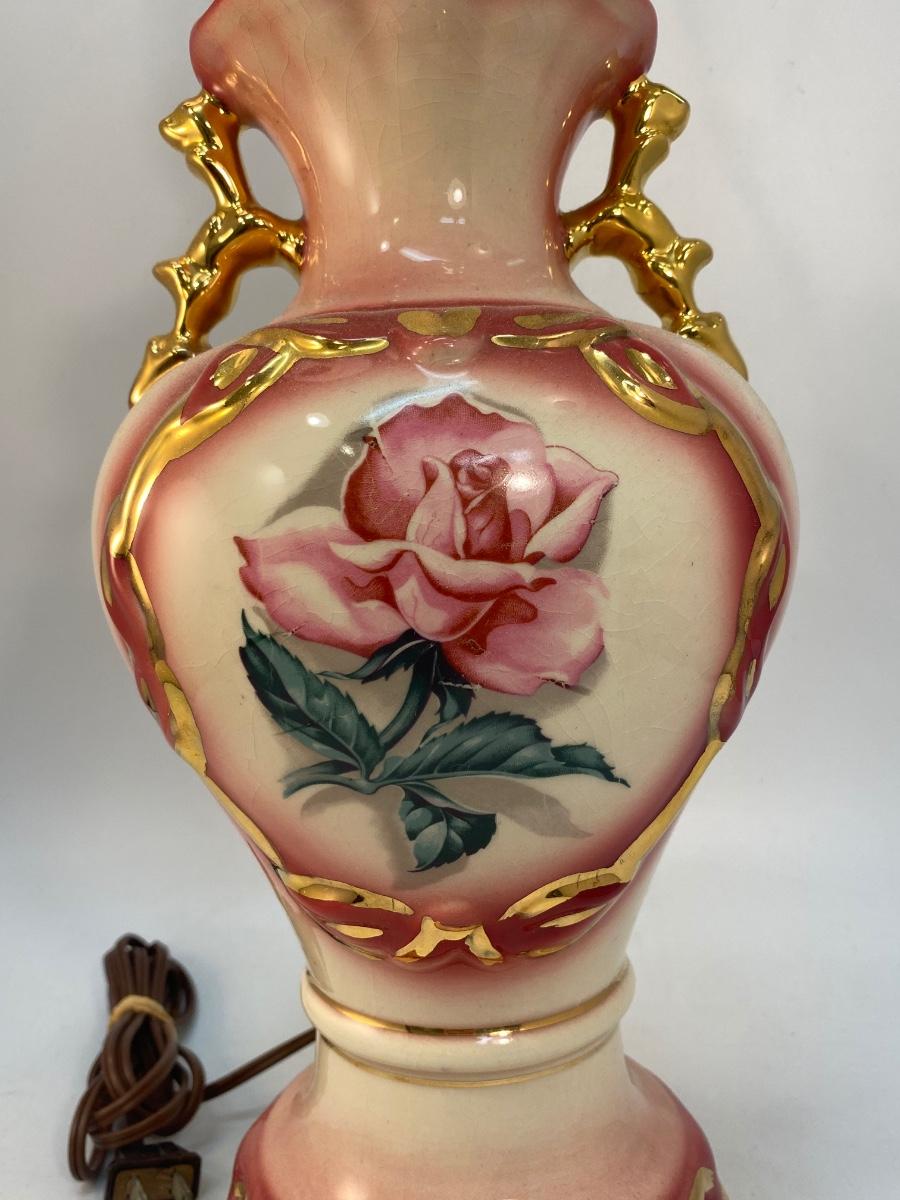 Vintage Light Pink Rose & Gold Gilt Table Lamp, Untested. In good vintage condition. No shade. There is crazing to the ceramic.