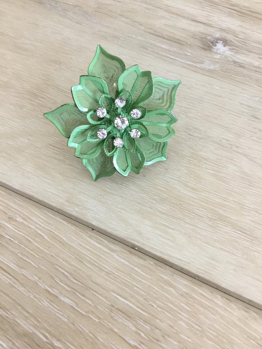 Vintage light sage mesh with rhinestone adjustable ring