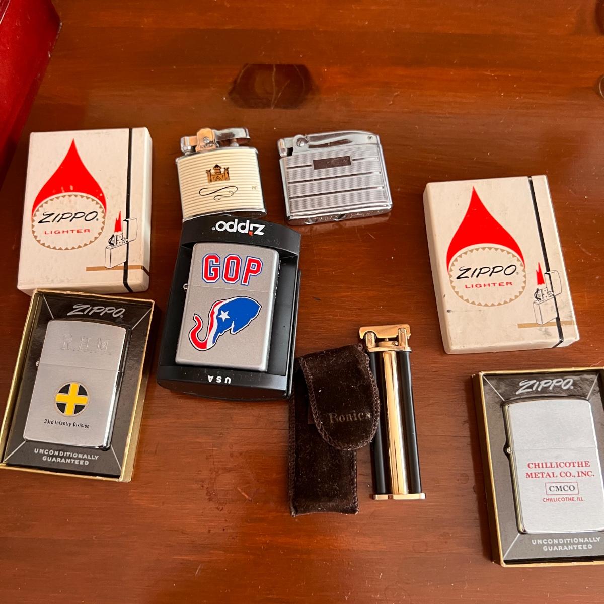 2 Zippo lighters still in boxes, Bonica lighter in case.