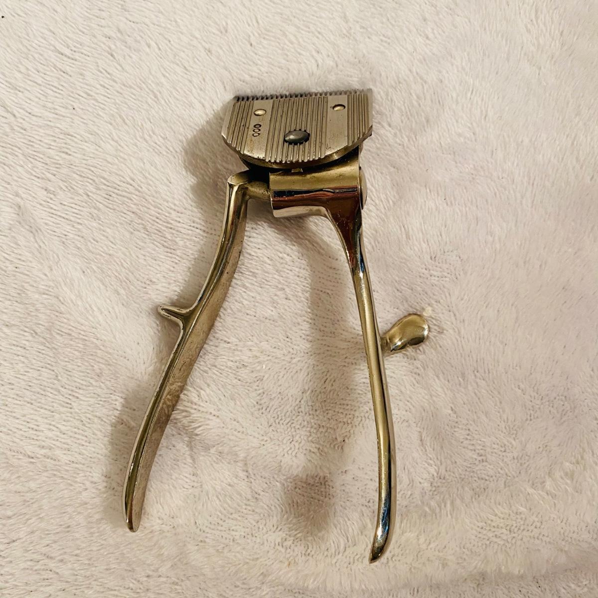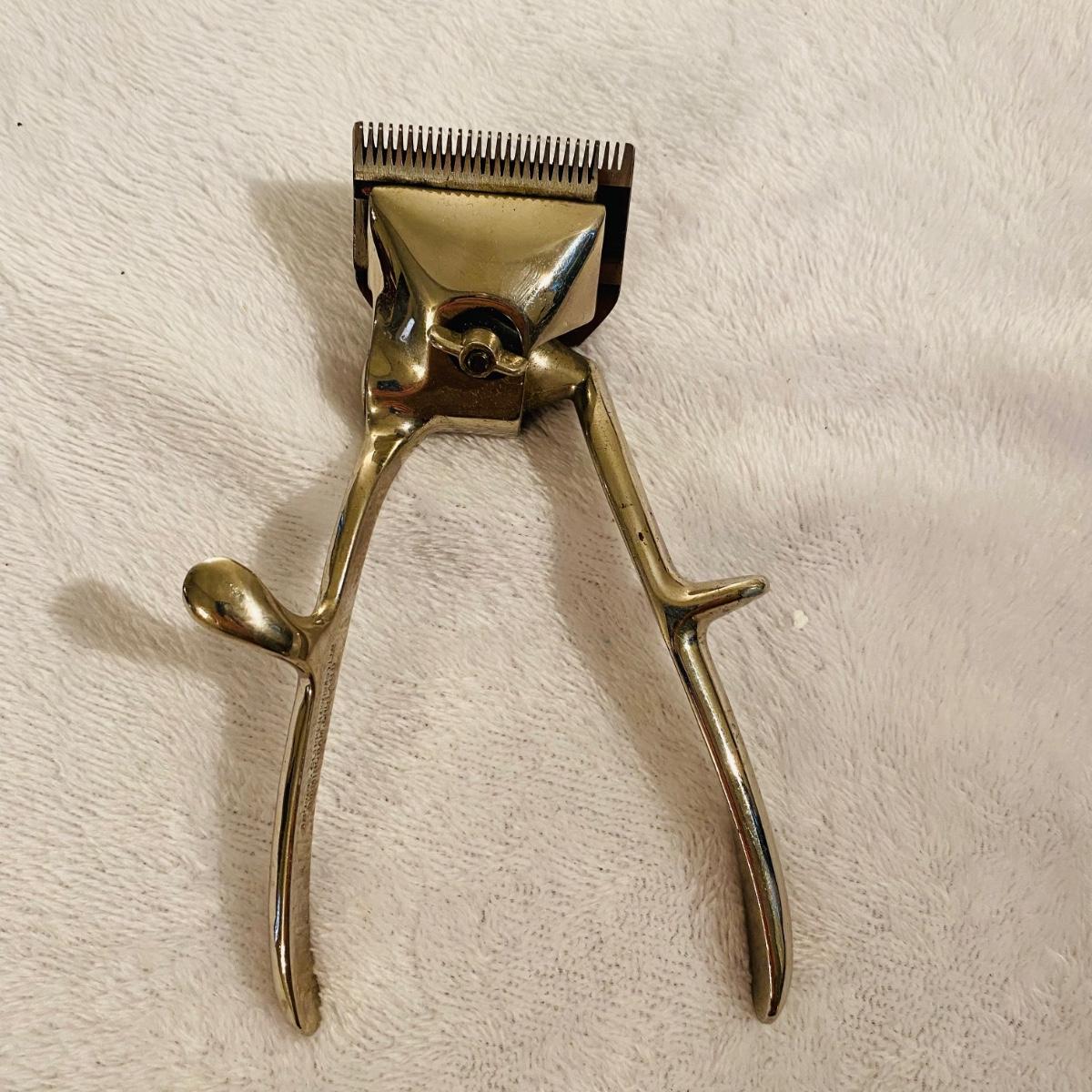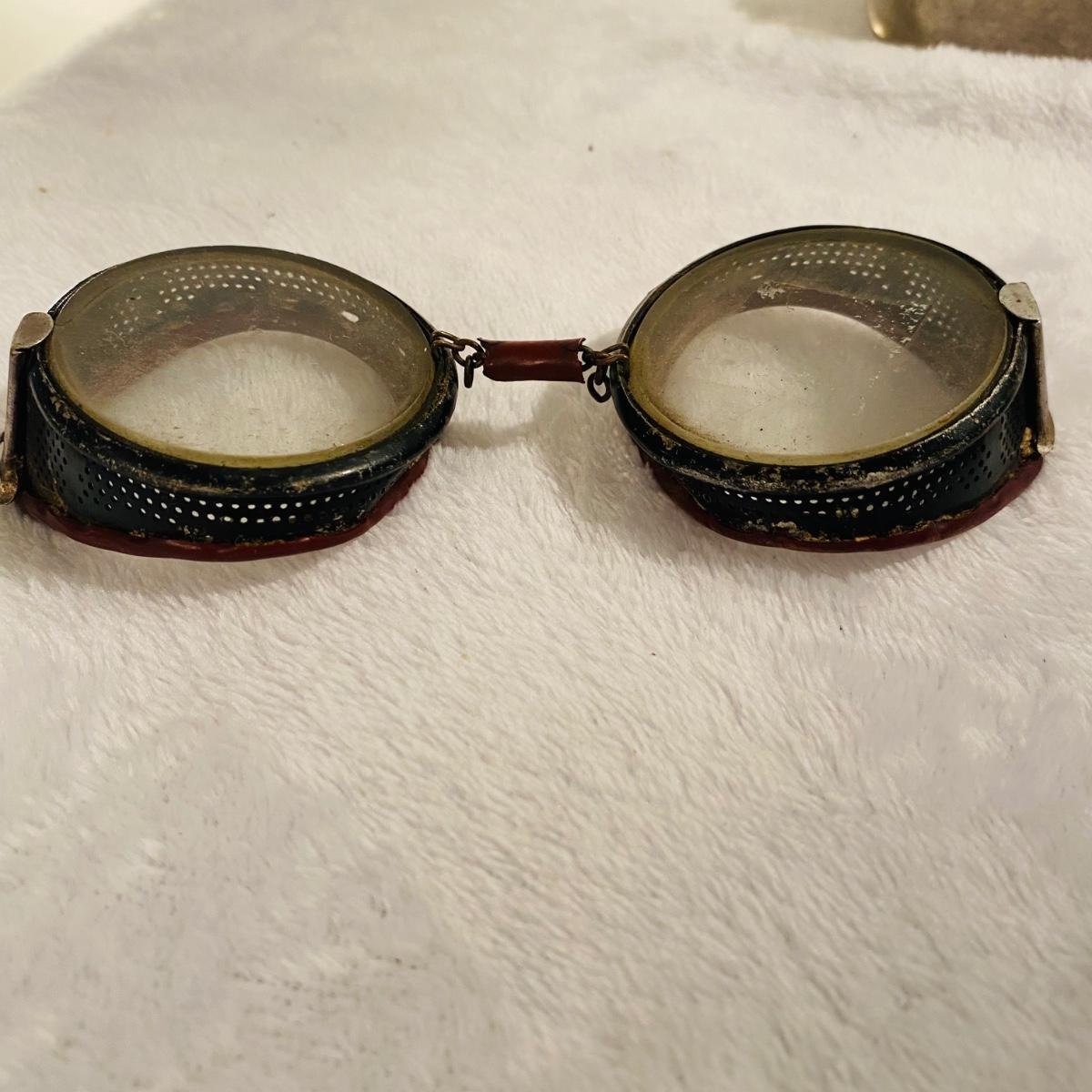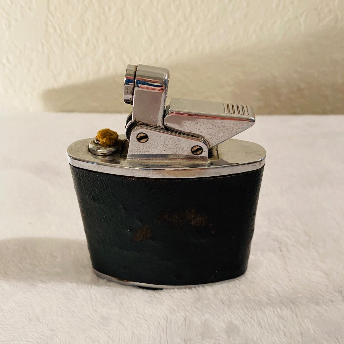 Lot includes 2” gold table top lighter, Majestic Clipper hair clippers by Allover Clippers in Racine, Wisconsin. “The Giant” black lighter with wick measures 4.5” x 3.5”. Aluminum soap dish measures 3.5” x 2.5”. Also included vintage safety goggles without strap.