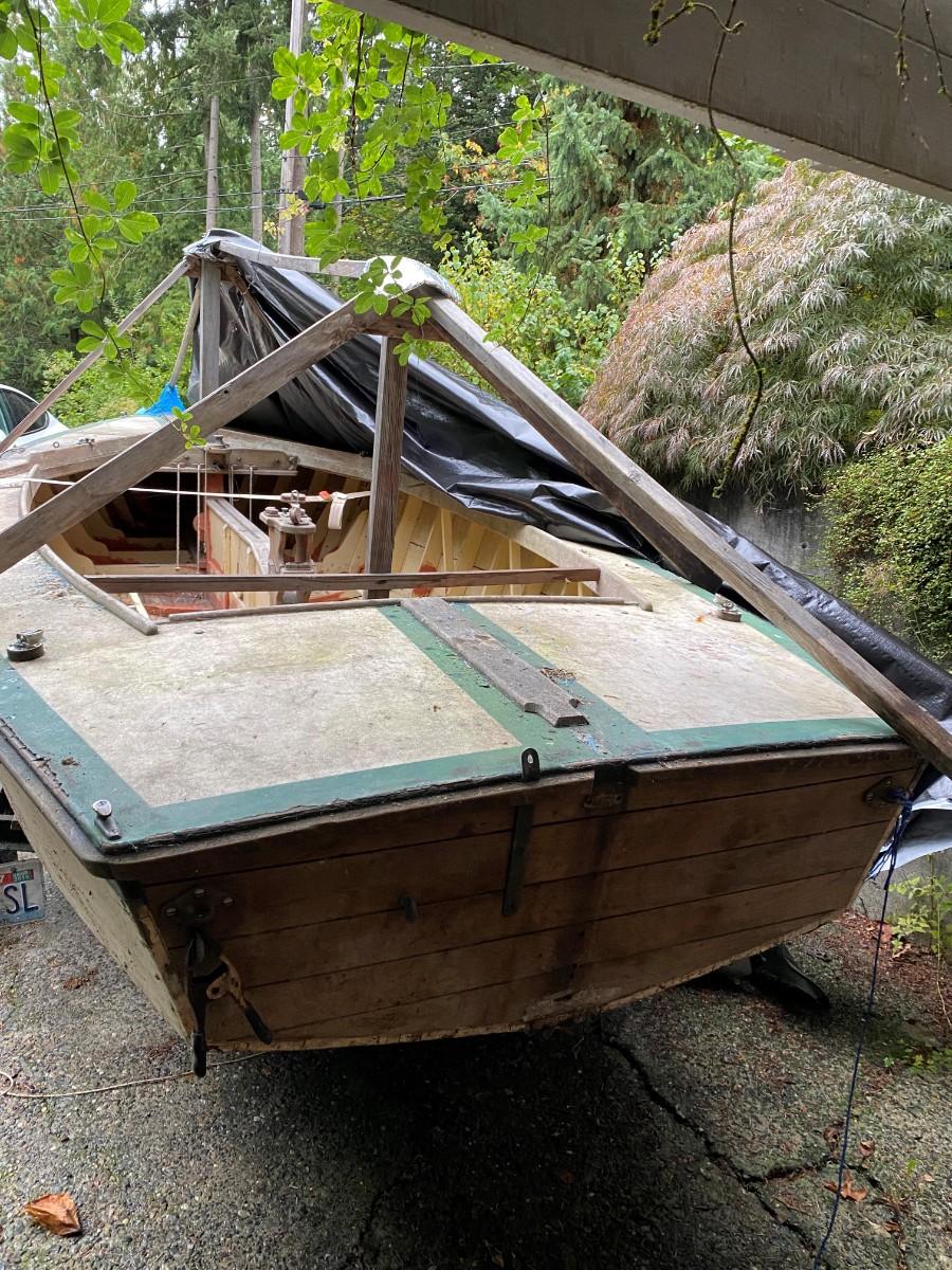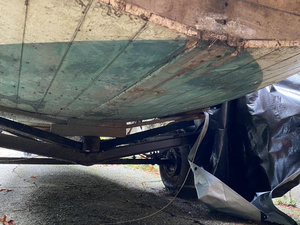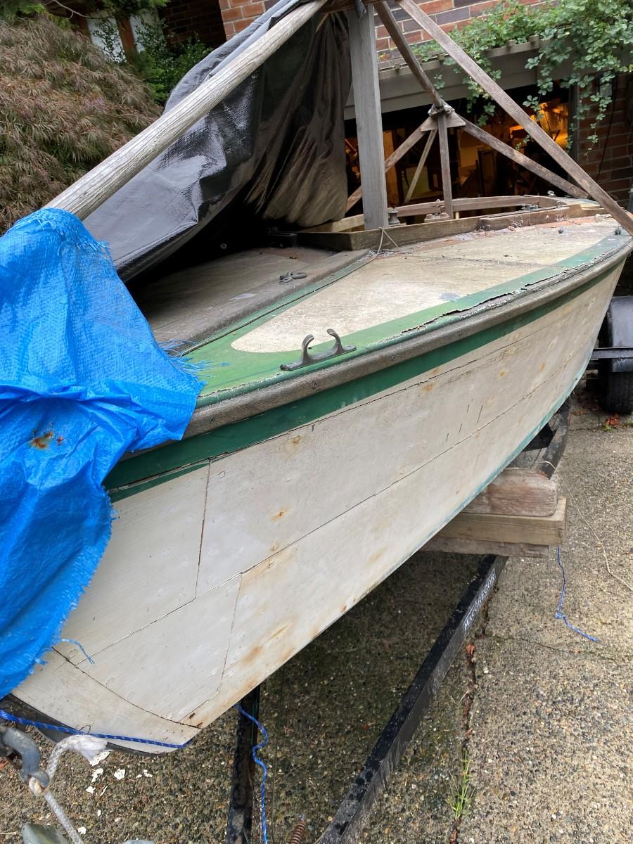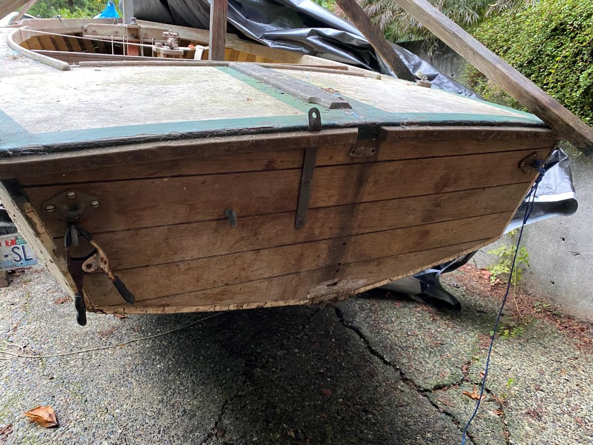 Fantastic project boat!! Antique Lightning Sailboat, circa 1950s or 1960s, and Trailer with Sailing Accessories (shown in photos). The Lightning was designed by one of America’s most distinguished yacht designers, Olin Stephens. Olin designed hundreds of famous record breaking yachts, including 7 or 8 America’s Cup yachts. This boat is waiting for someone to fix her up!