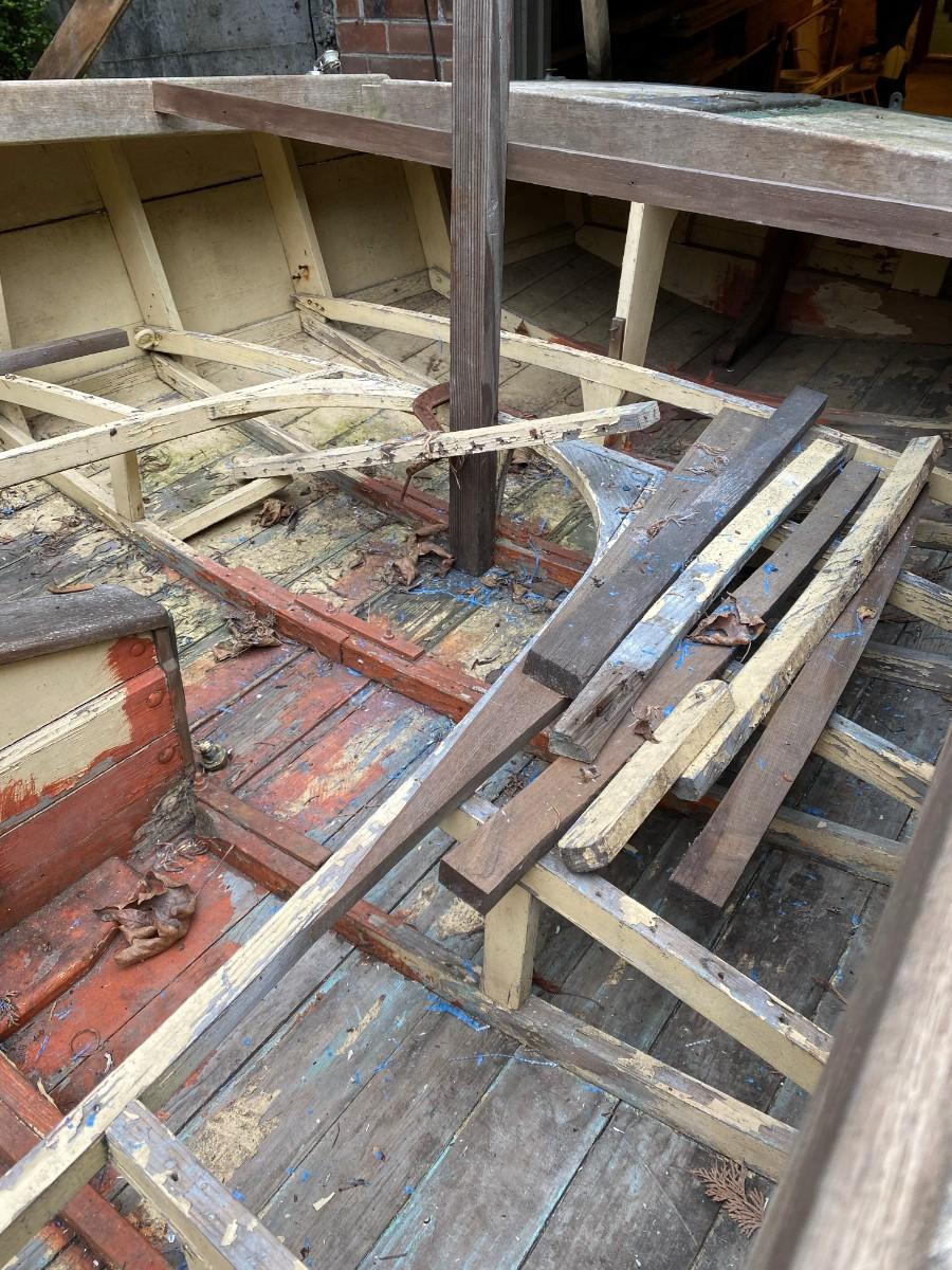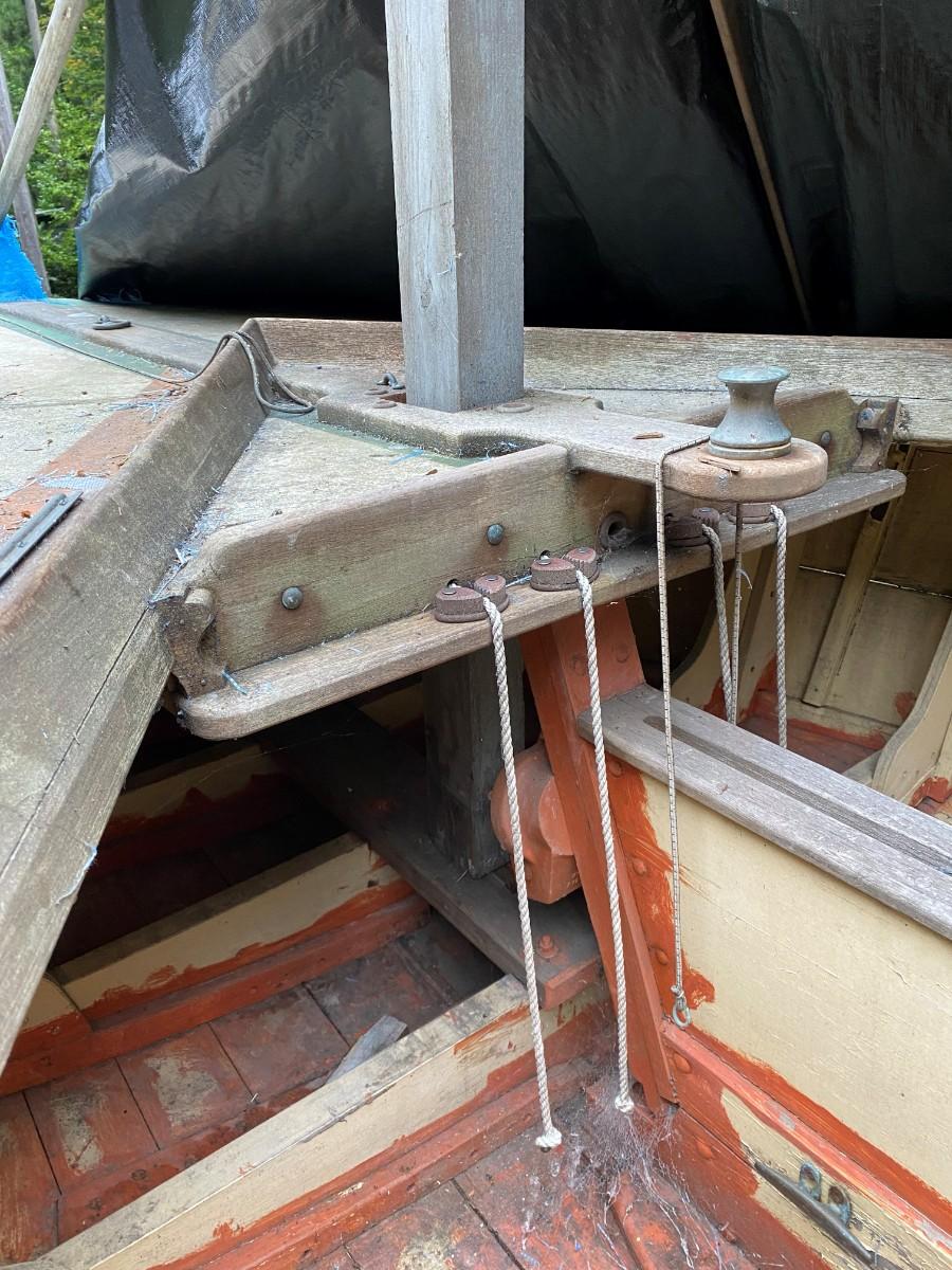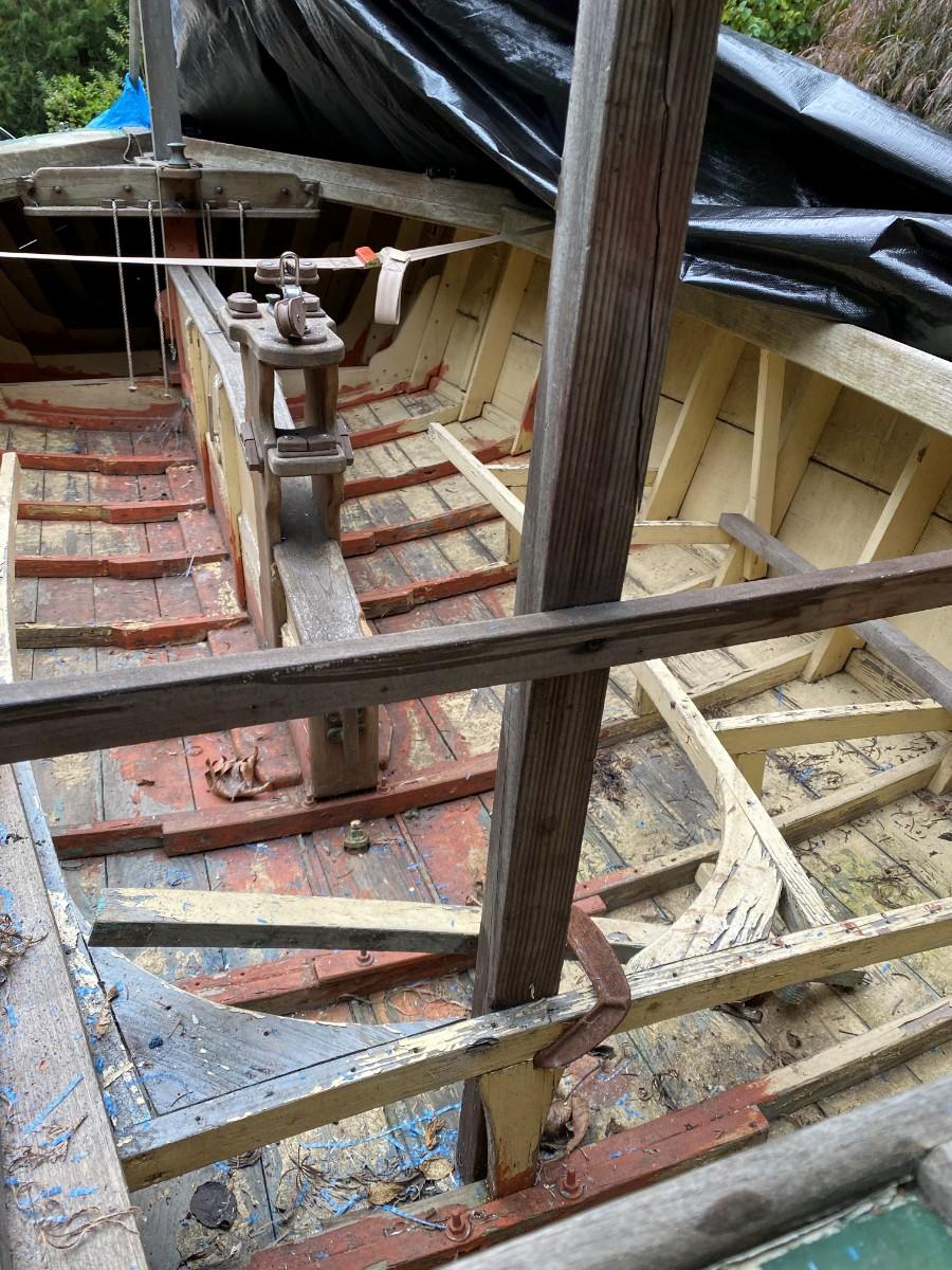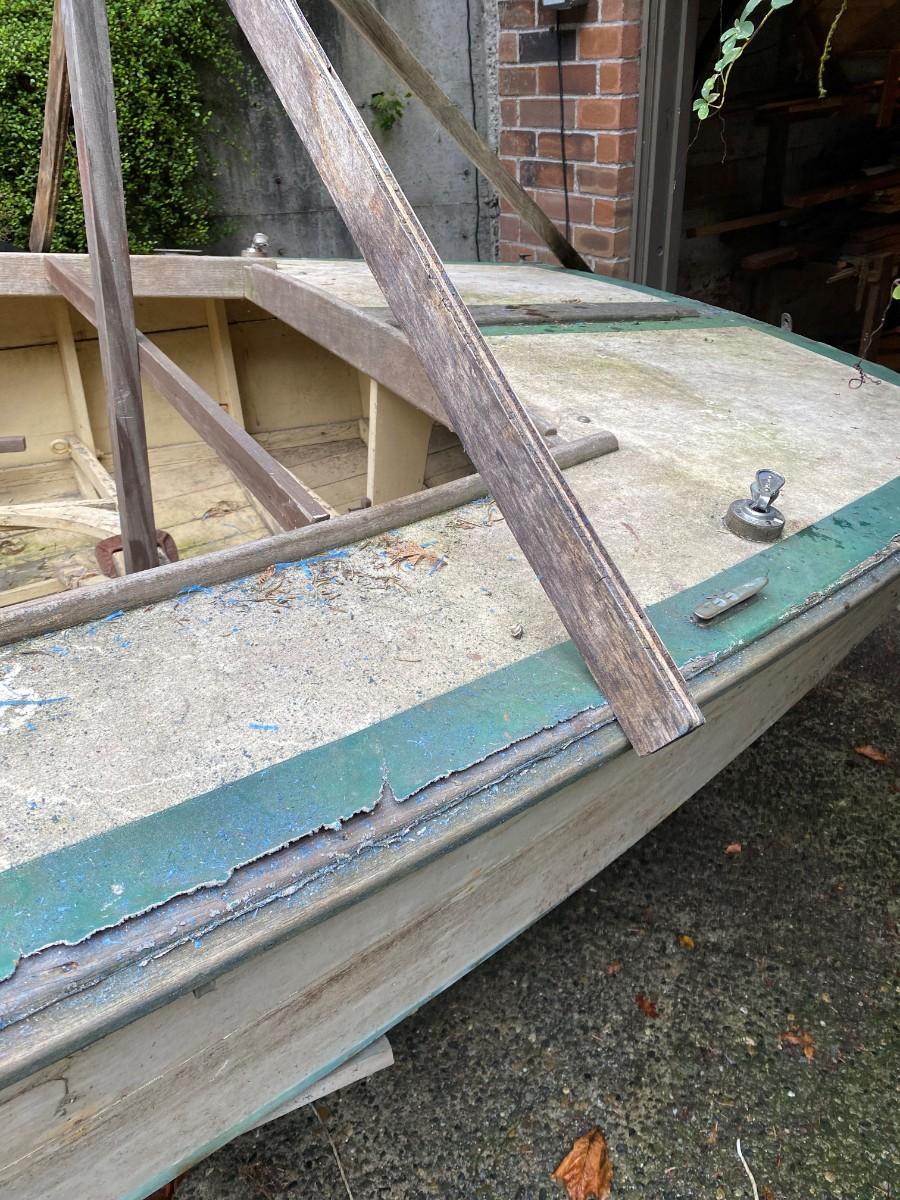 Fantastic project boat!! Antique Lightning Sailboat, circa 1950s or 1960s, and Trailer with Sailing Accessories (shown in photos). The Lightning was designed by one of America’s most distinguished yacht designers, Olin Stephens. Olin designed hundreds of famous record breaking yachts, including 7 or 8 America’s Cup yachts. This boat is waiting for someone to fix her up!