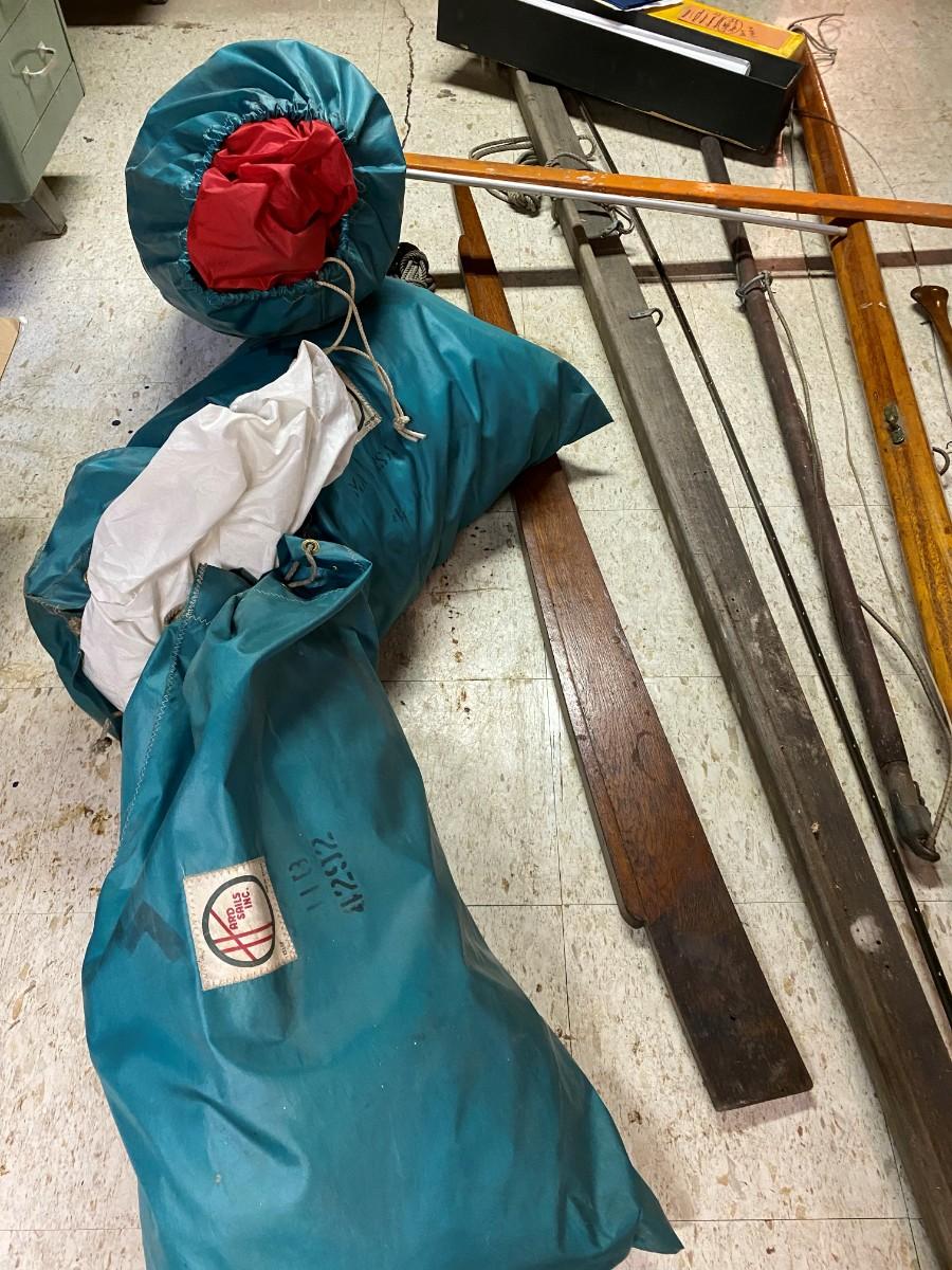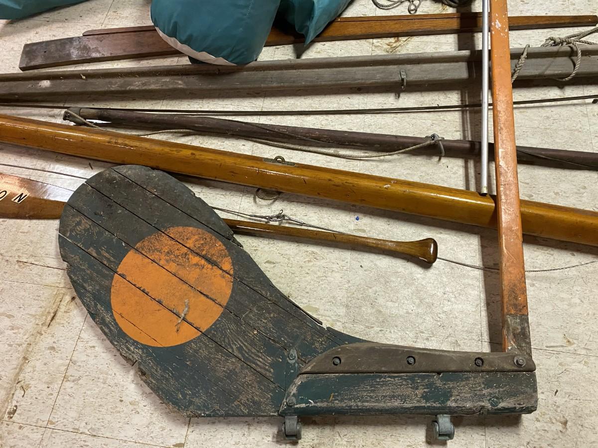 Vintage Lightning Sailboat and MacGregor Boat Trailer with Sailing Accessories