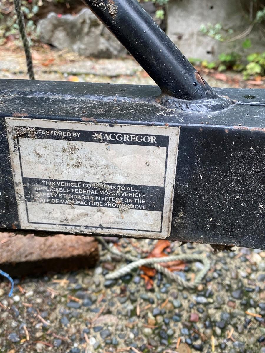 Boat Trailer ““ The boat trailer goes with the Lightening boat in the auction. It handles a 17’ to 20’ boat. File folder with history of purchase available to buyer. Boat trailer has a low tire ““ perhaps more than one (be prepared to make sure tires work prior to removal). One extra boat trailer tire is in good condition (see images). Trailer Information: Make: MACGR (MacGregor Boat Trailer). Title issued 7/16/2010 ““ trailer year 1993. Color black. Scale weight 00750. Washington licensed and title is clear and available to purchaser.