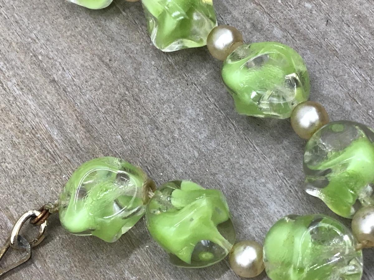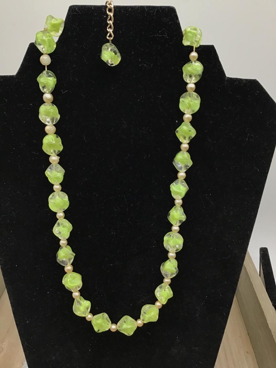 Vintage Lime Green Glass Necklace. Germany