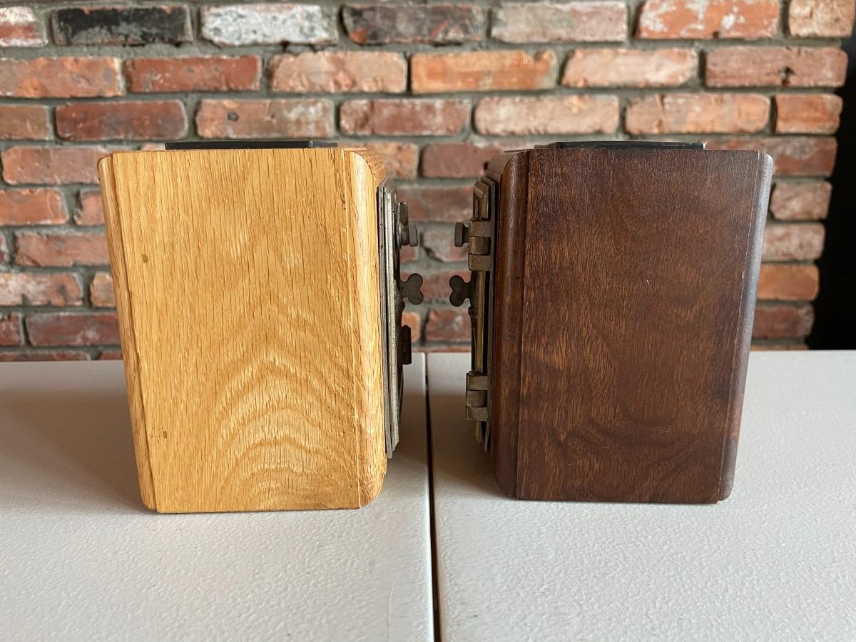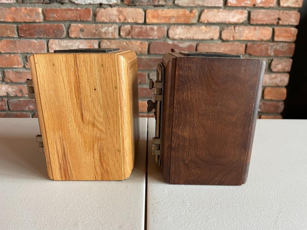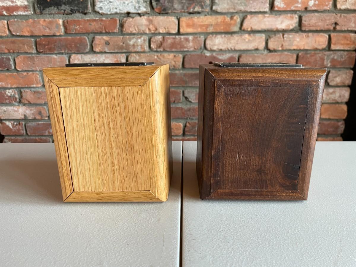 Lot includes 2 lock boxes in two wood tones. Beautifully preserved item. 5L x 5Wx 6h