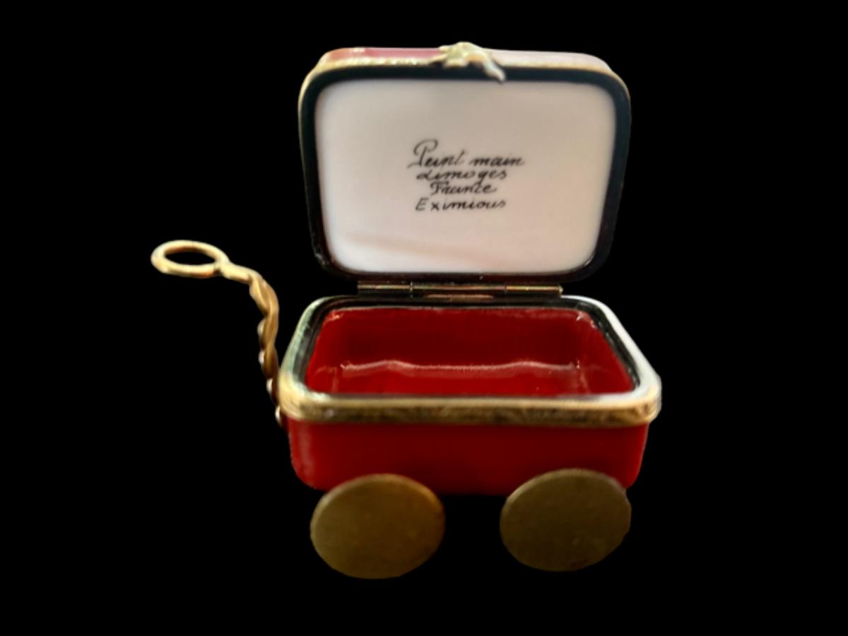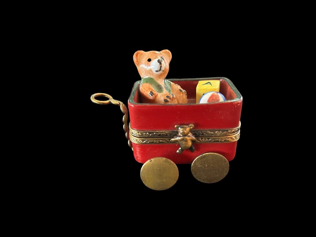 Vintage Limoges Peint Main Trinket Box - Bear Toy Wagon