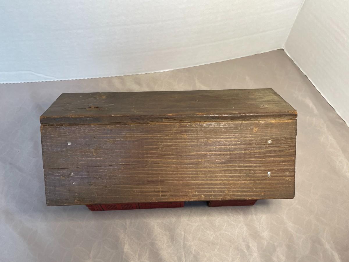 This piece is in great conditon and measures about 10.5 inches by 5.75 inches and is about 5.5 inches tall. It is all wood and looks like it was never played with. I could not find another one like it anywhere.