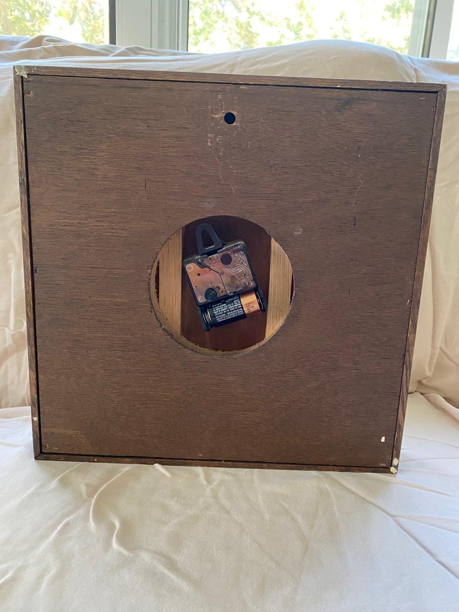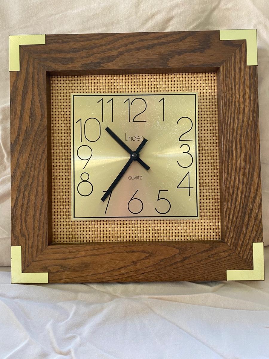 Vintage Linden Quartz Wood Clock. Works and keeps time. Some normal wear 13.5”Wx2”Dx13.5”L