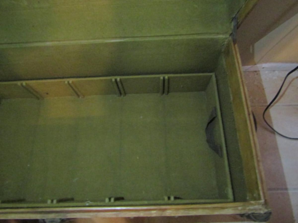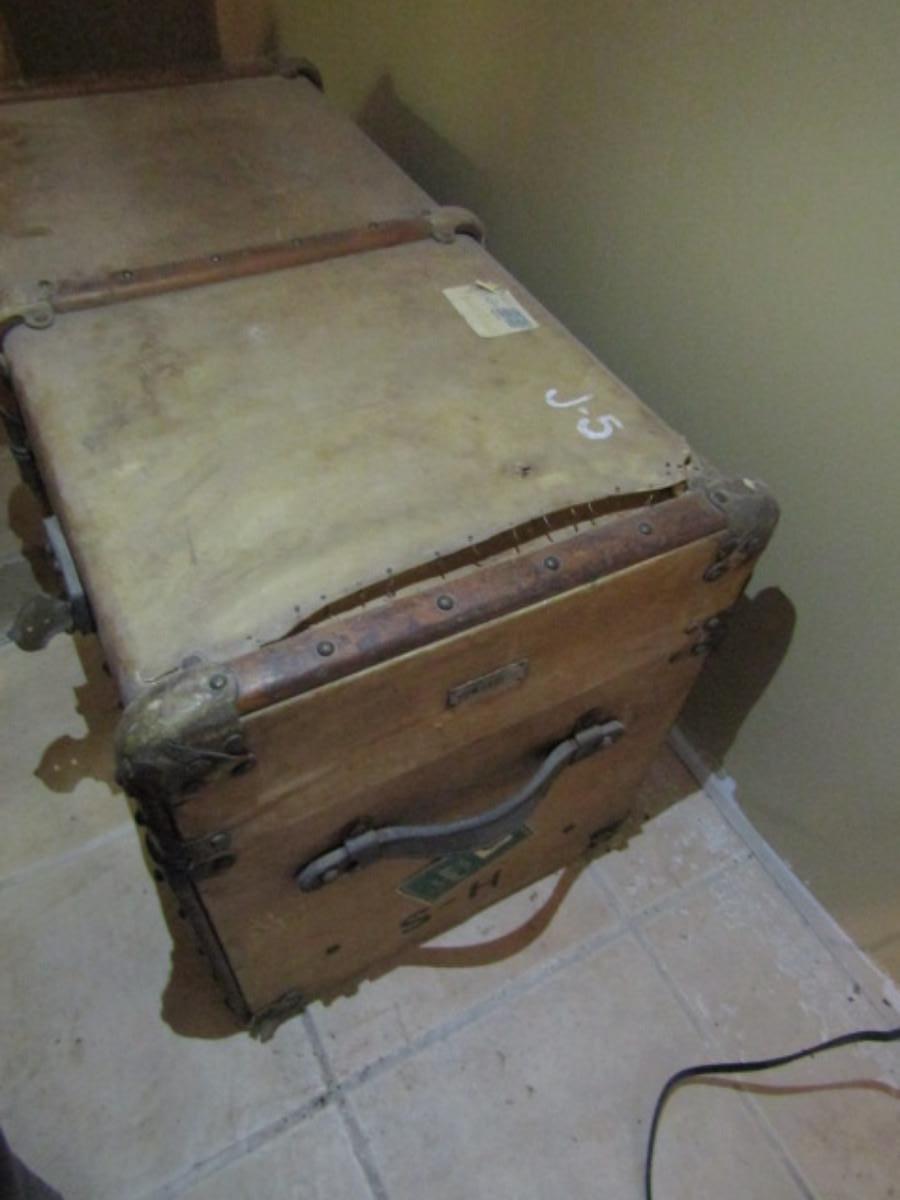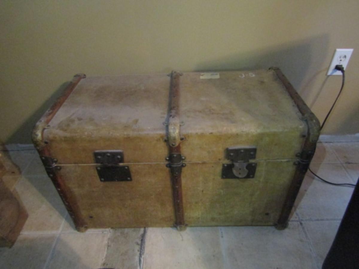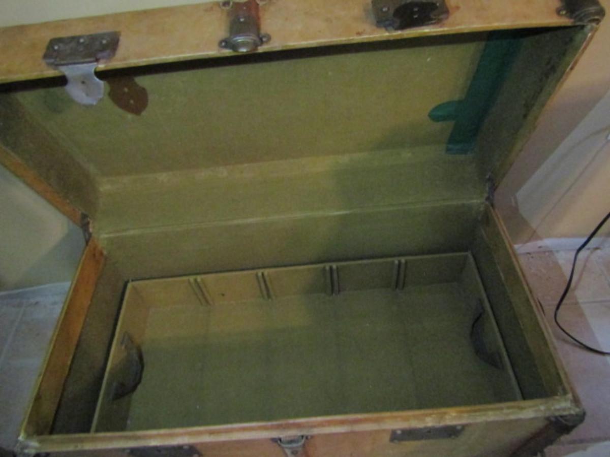 Vintage Lined Trunk with Wood and Metal Accents- Three Removable Trays