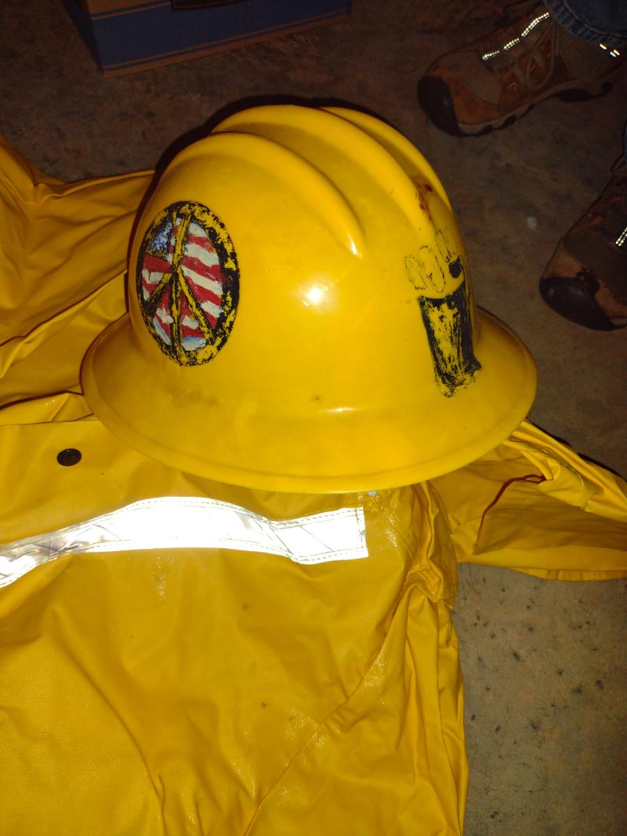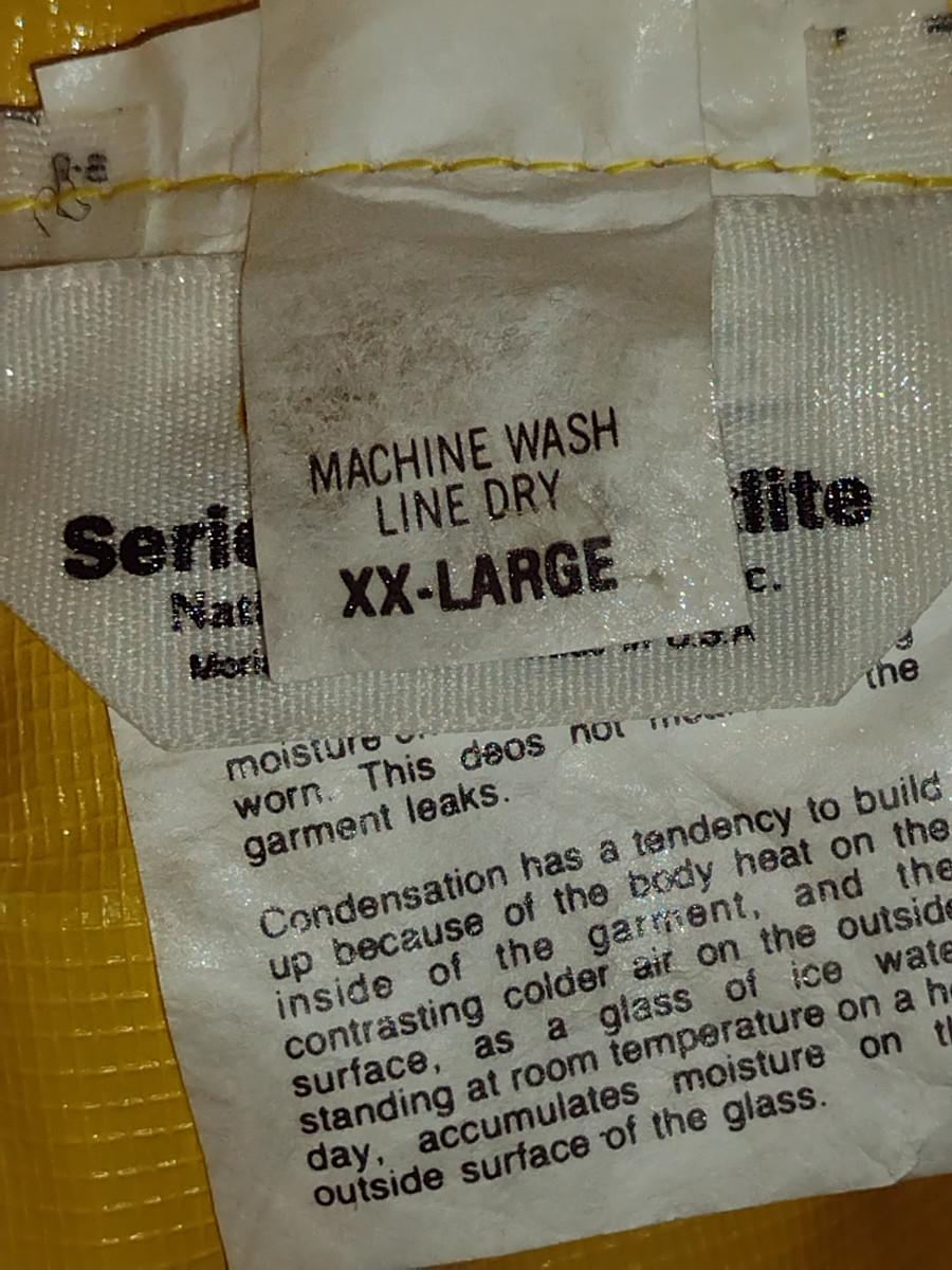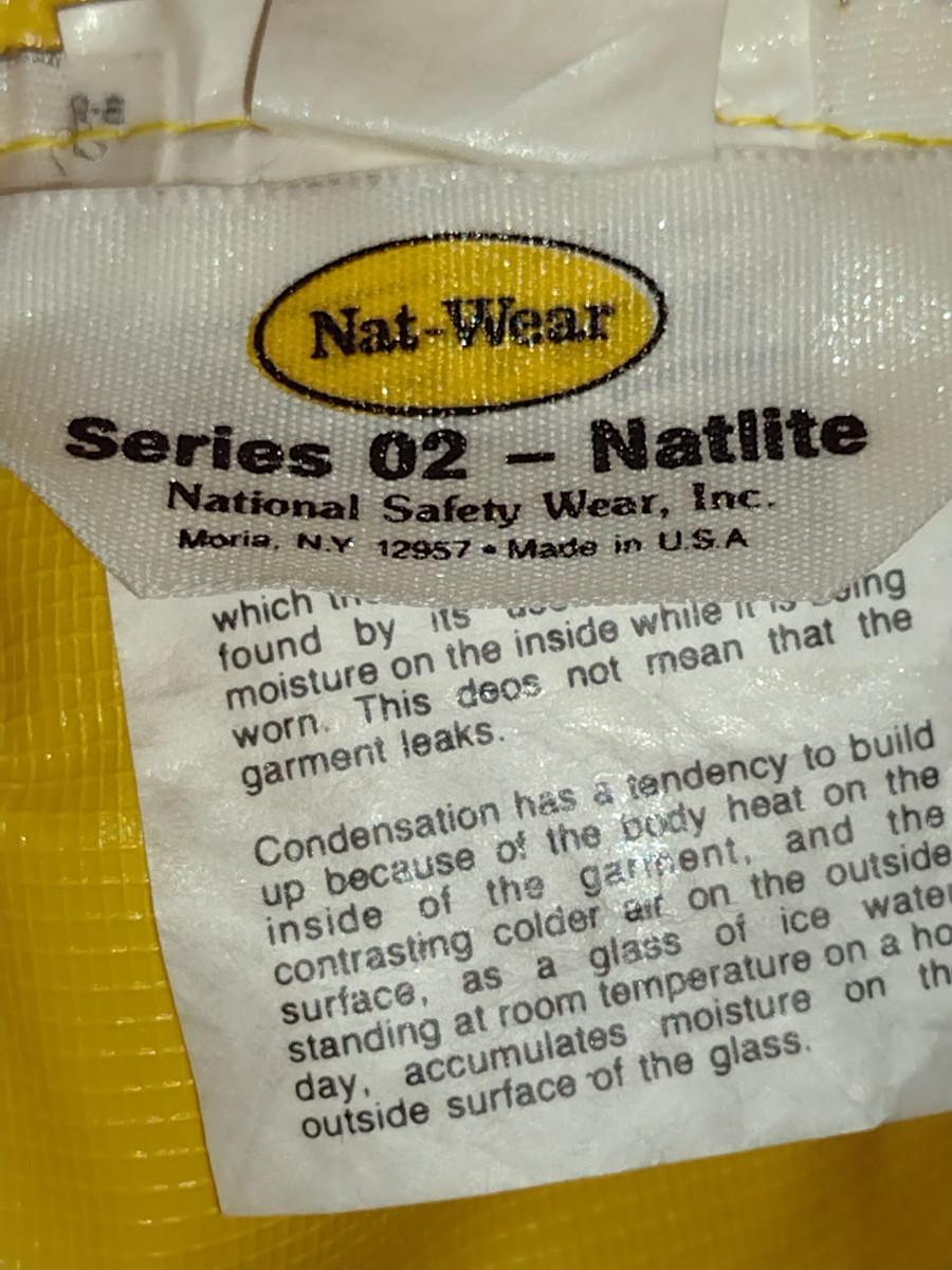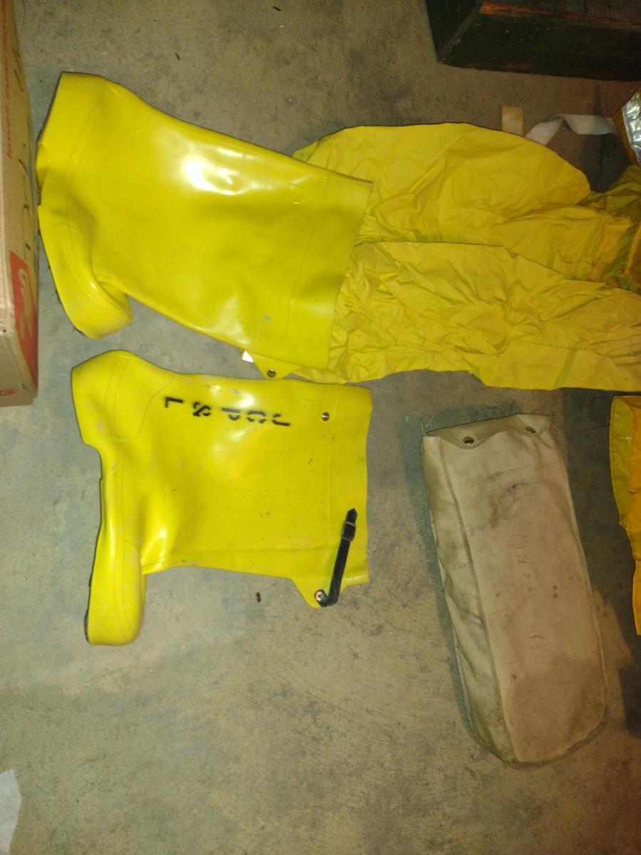Vintage Lineman's Rain Wear. Two coats, pants, hard hat, boots. Jersey Central Power & Light (JCP&L). Size approx 2XL.