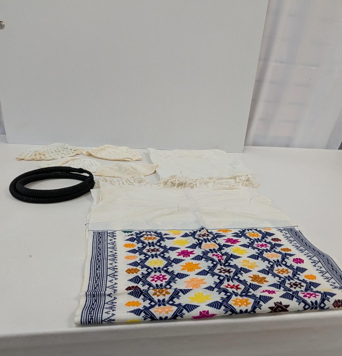 Vintage Linen Handcrafted Kippah Hand Woven Decorated Rug