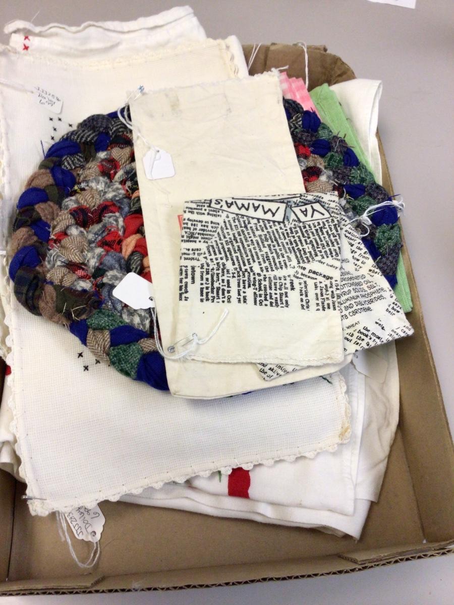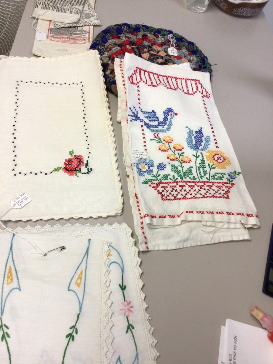 There are some great fancy work in this lot. There is needle point, runners, table clothes and doily’s.
