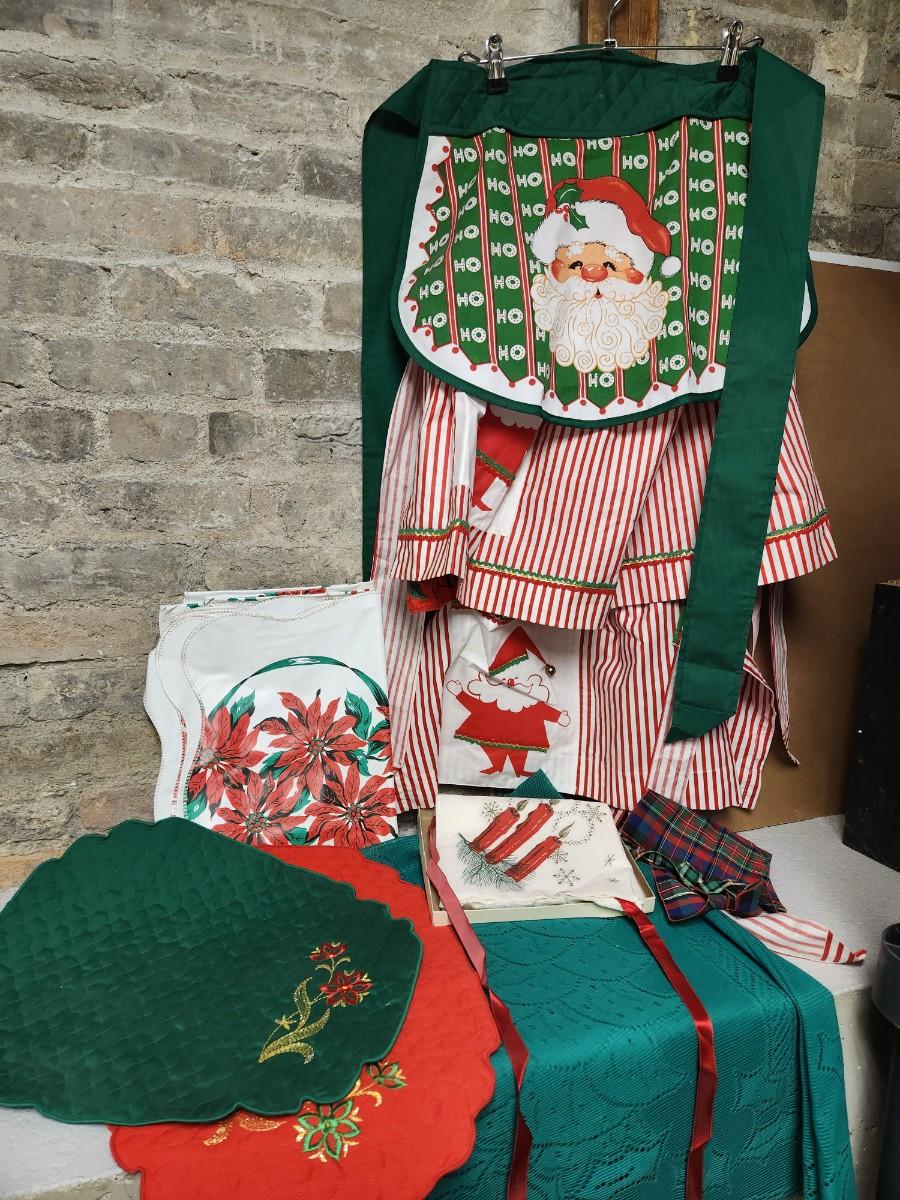 So cute....vintage Christmas aprons, table dressings etc etc