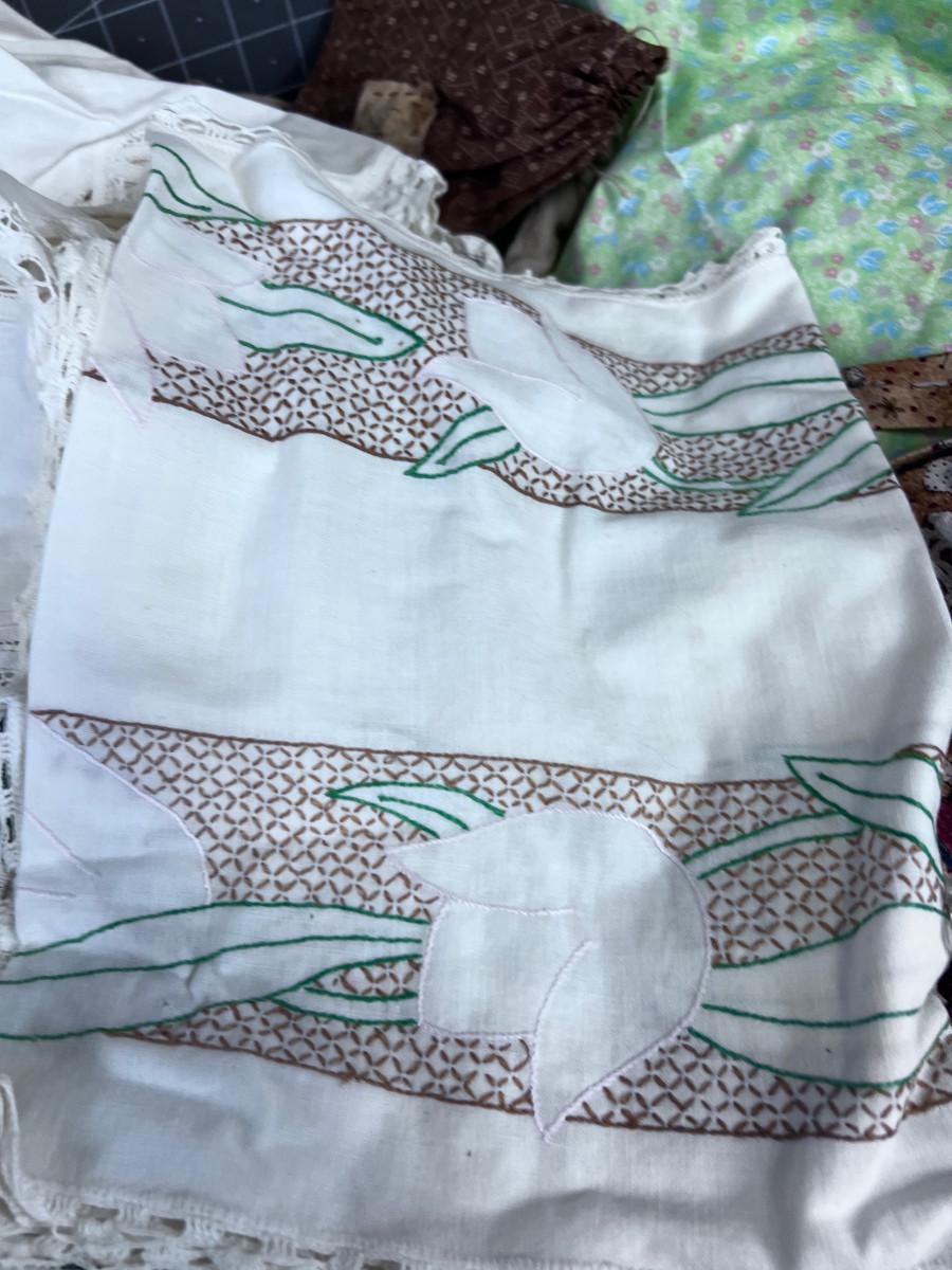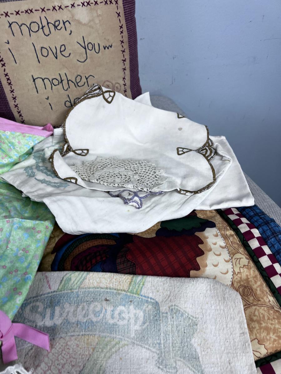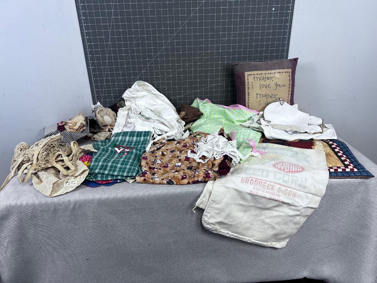 Vintage Linens Doilies, Flour Sacks, Pillows etc.