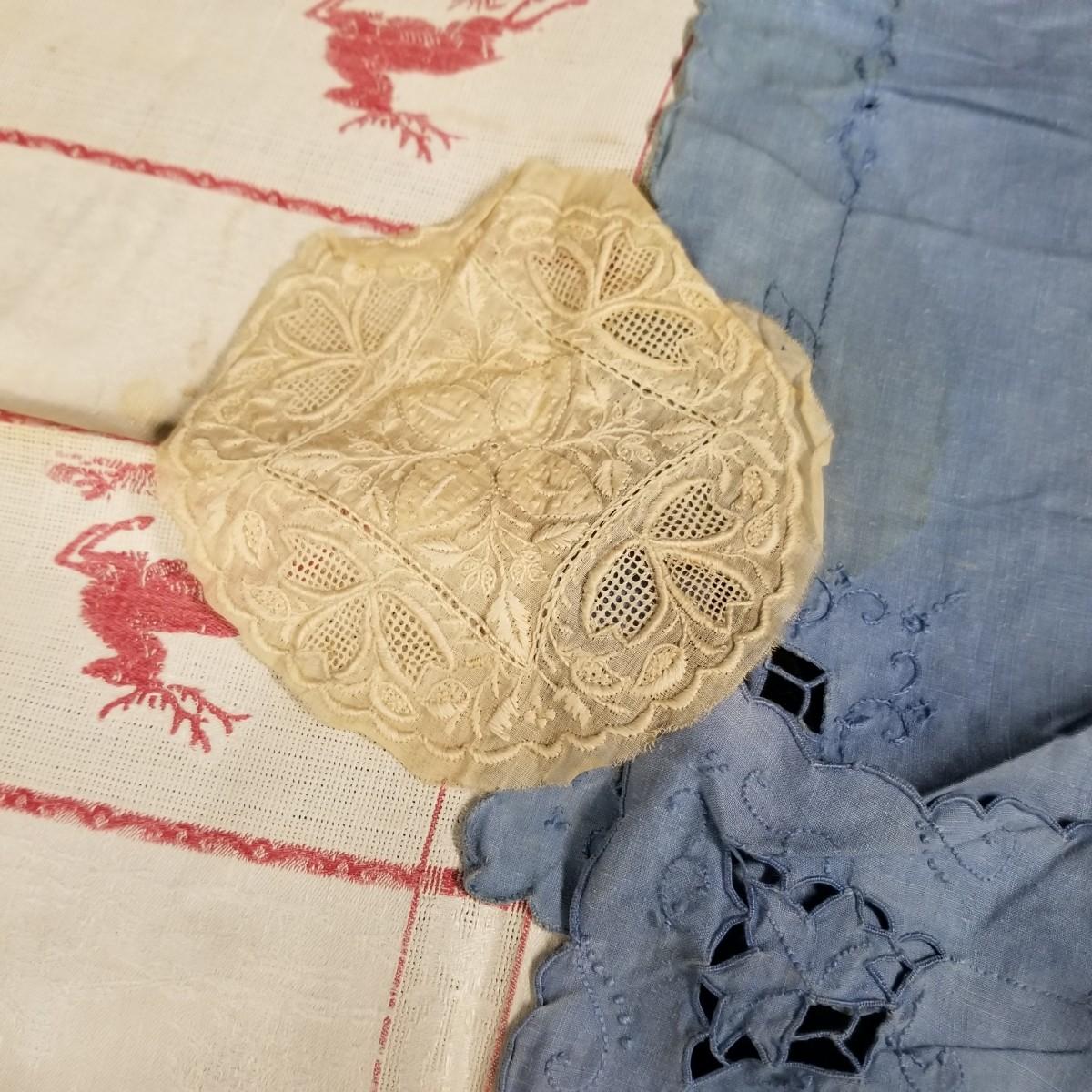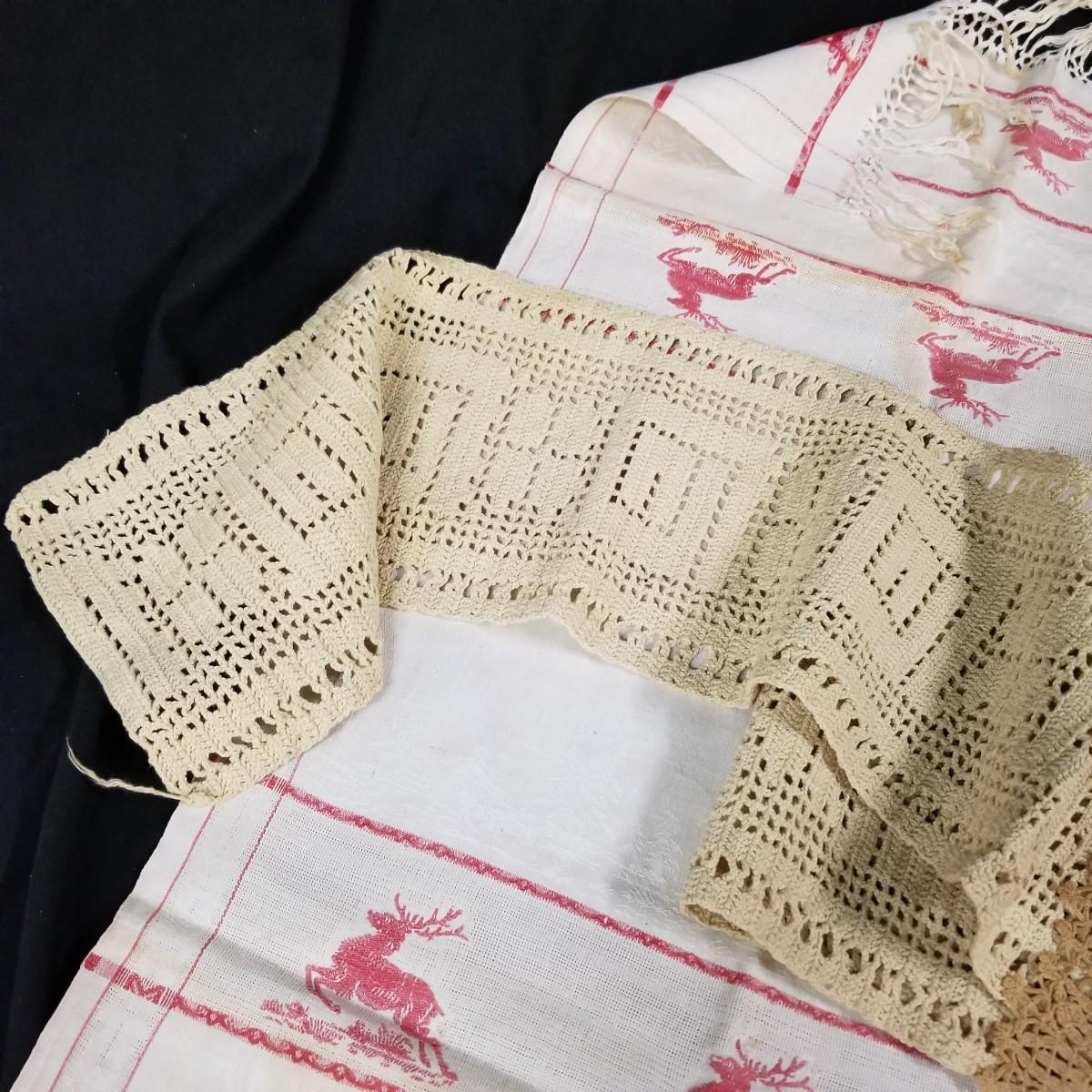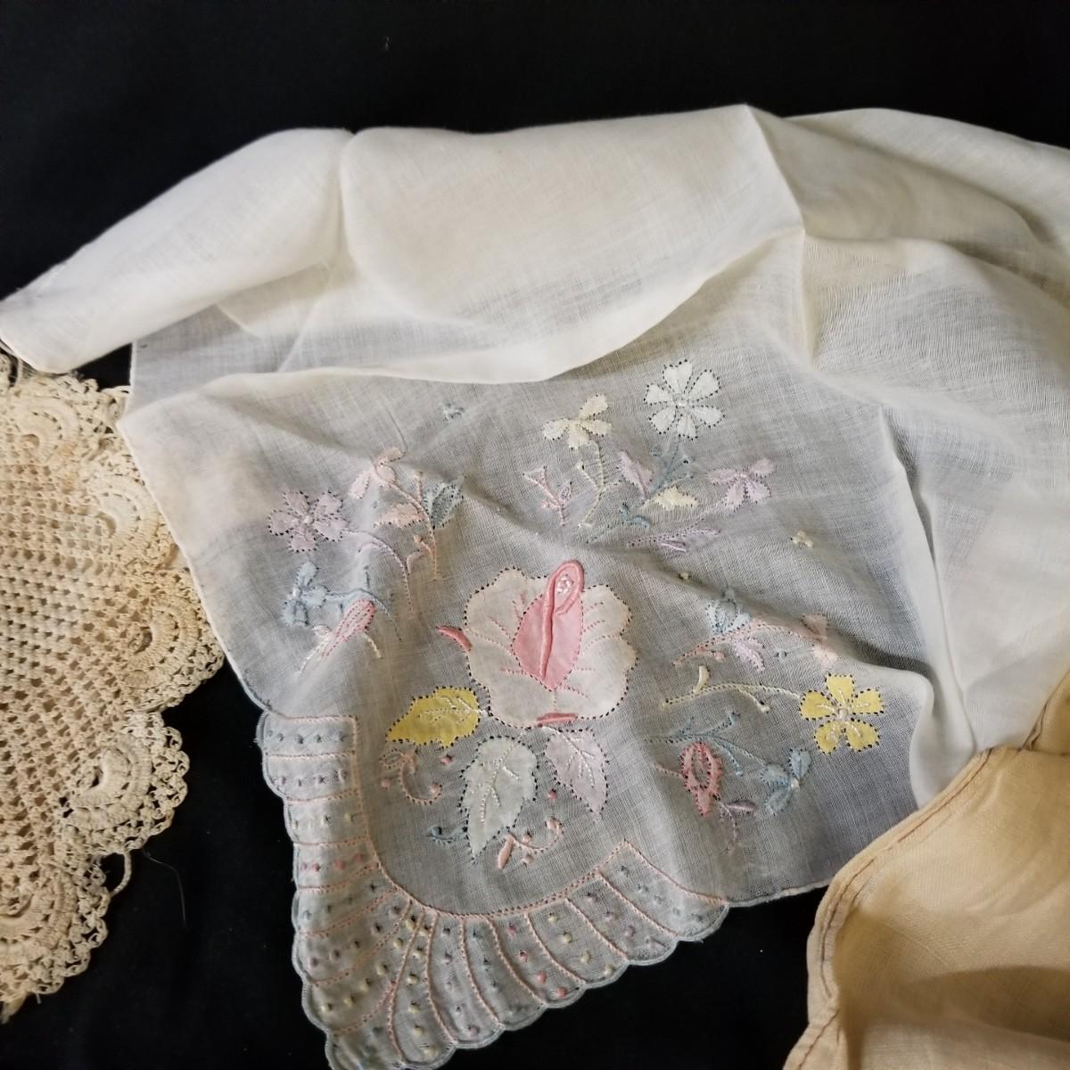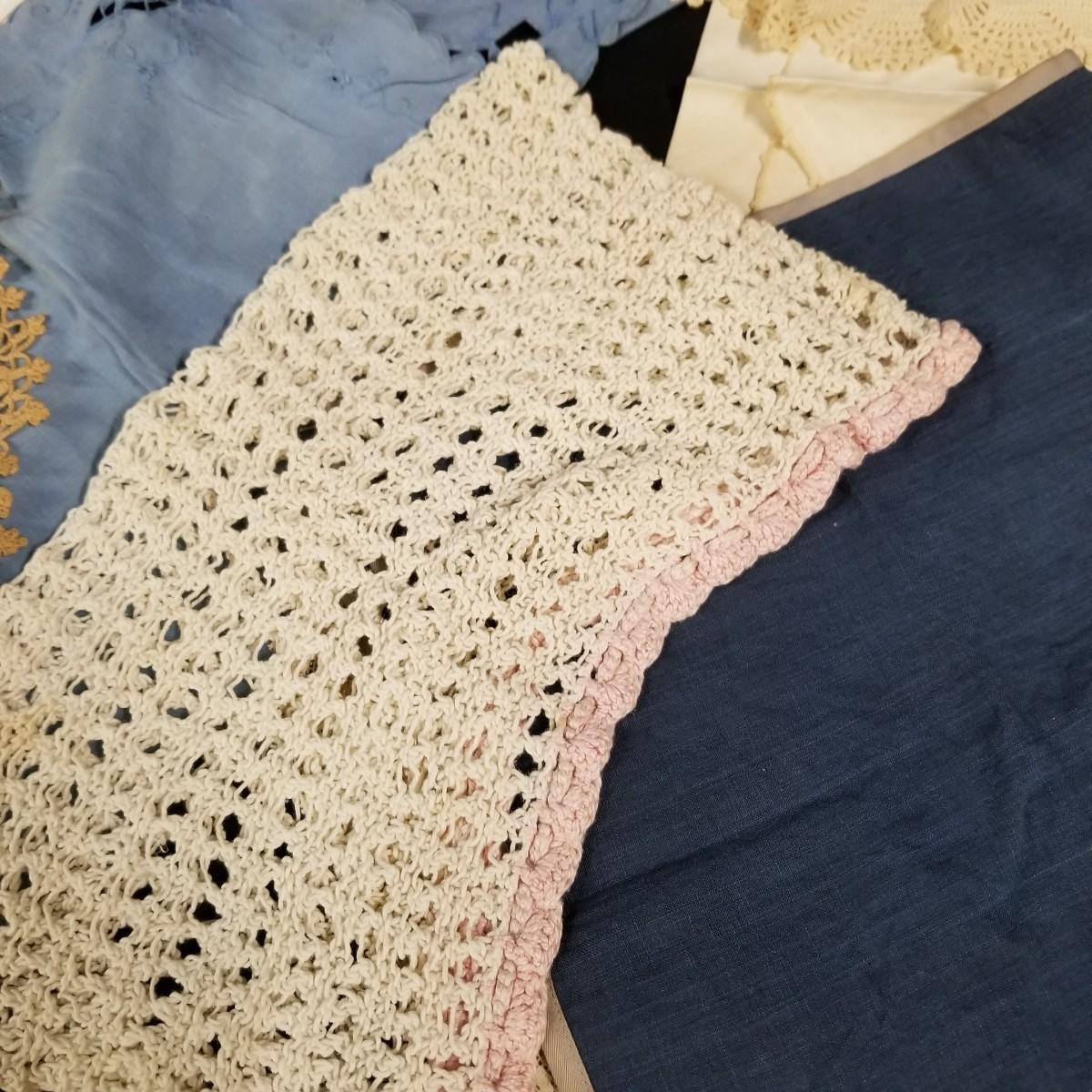 A nice assortment of vintage tablecloths, napkins, runners and doilies. Many different styles, crochet, woven, etc.  Tablecloths range in size from 48"x48" to 54"x68".  Note some discoloring on older items, see photos for detail.  Shipping available.