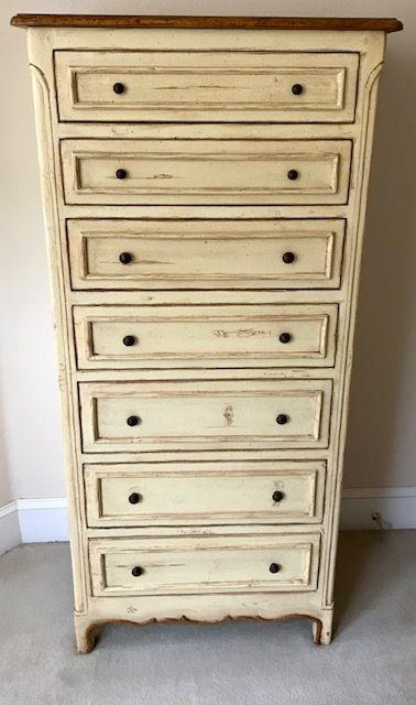Seven drawers. Measures 59 inches tall, 28 inches wide and 18 inches deep. Good condition.