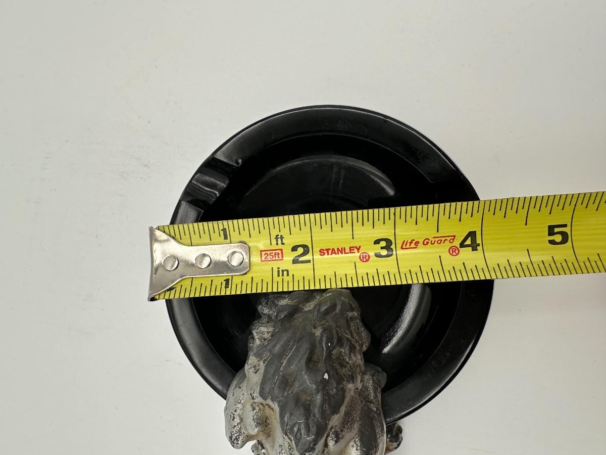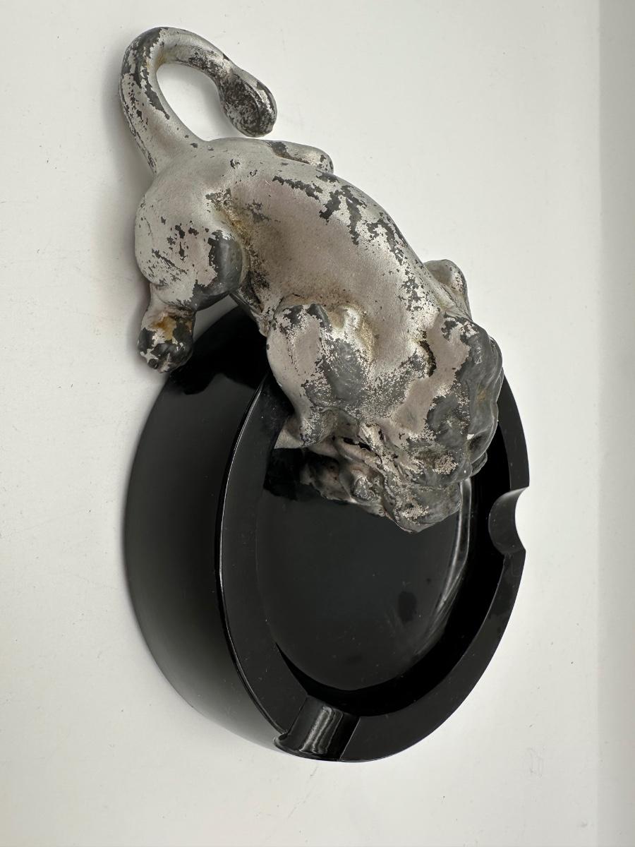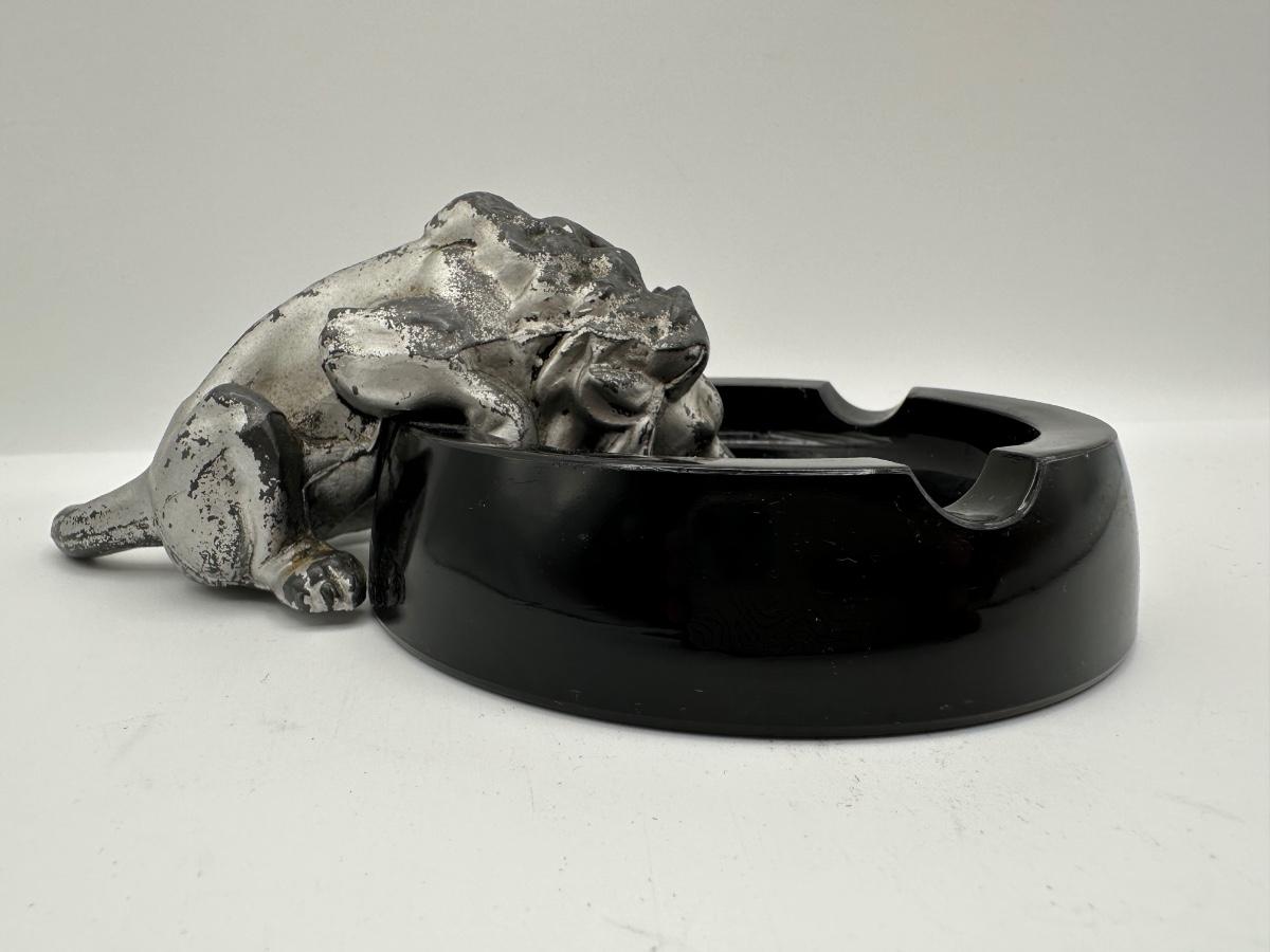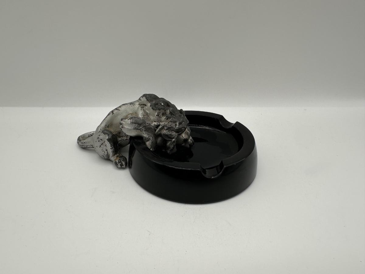 Vintage Lion Figural Ashtray – Cast Metal & Black Glass