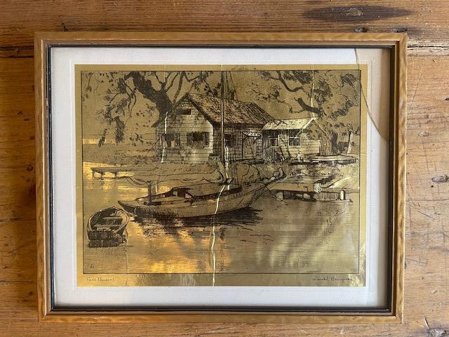Vintage Lionel Barrymore Gold Foil Etching Print - Point pleasant - 11x9 - seems to have a partial crease - see pic