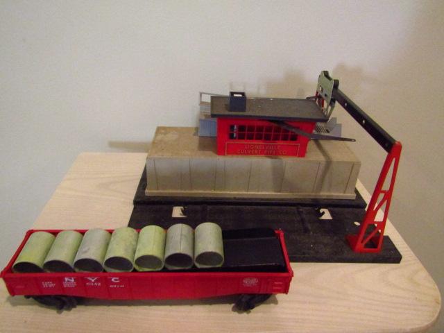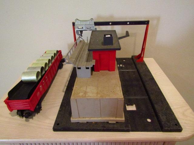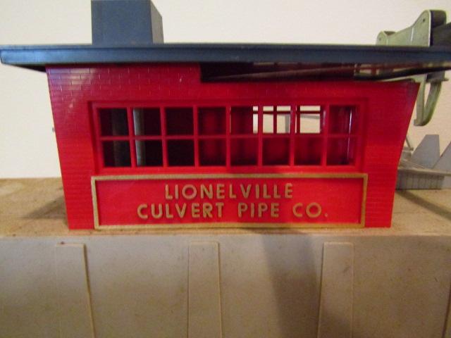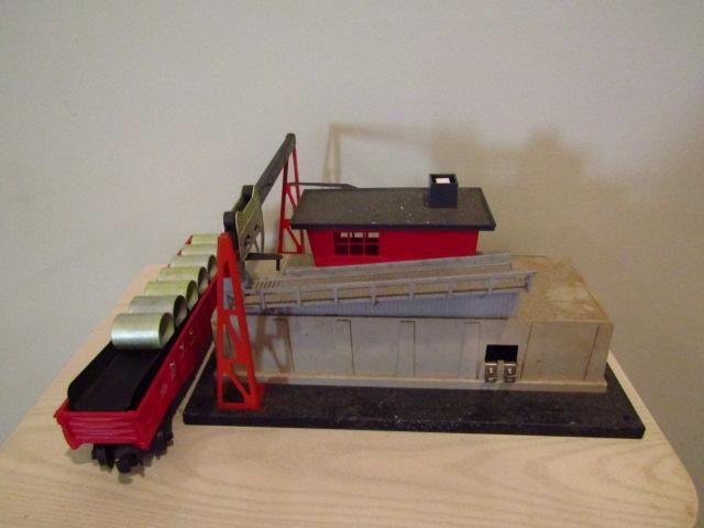 Vintage Lionel Culvert Pipe Company Loading Station with Rail Car
