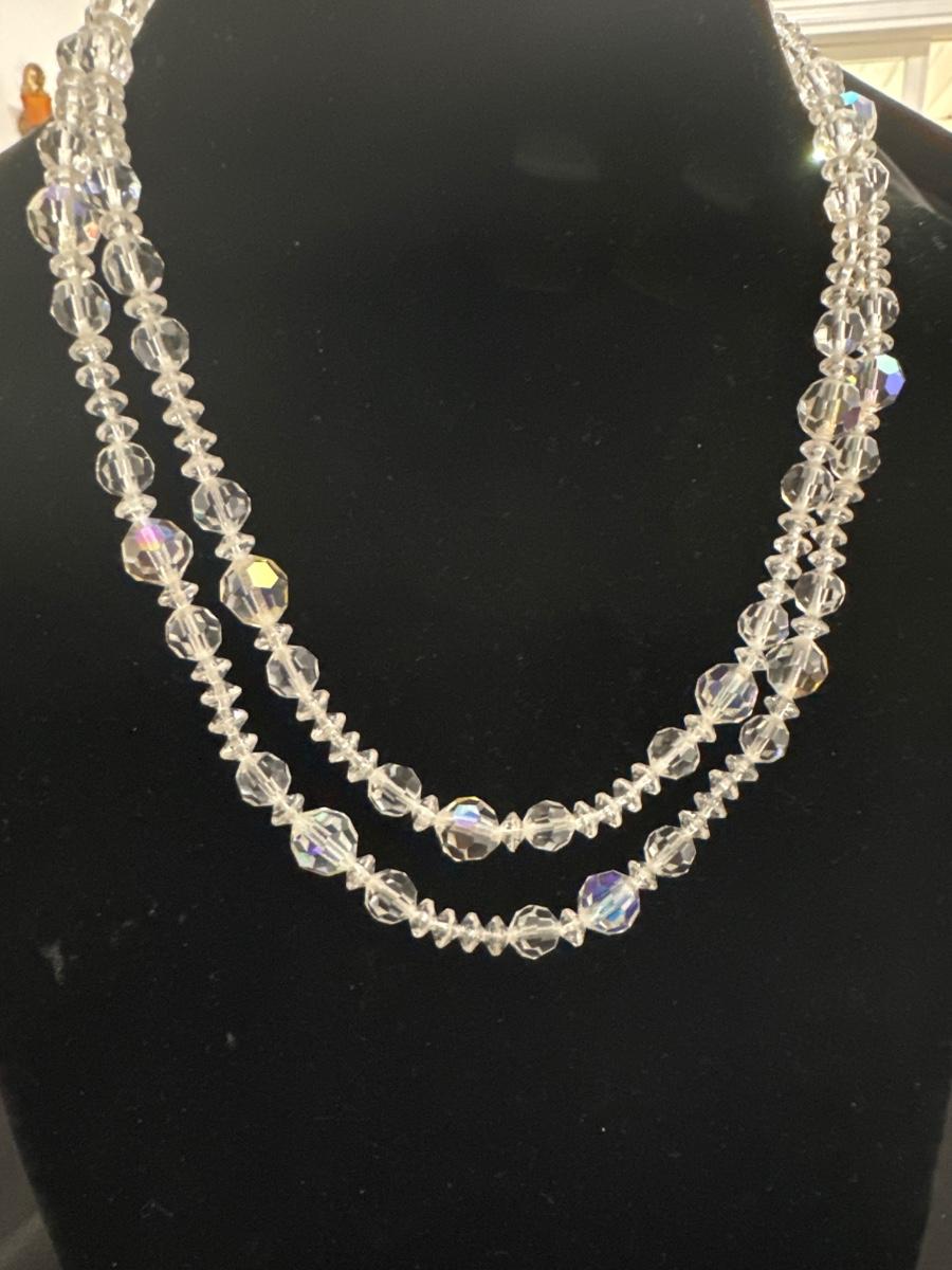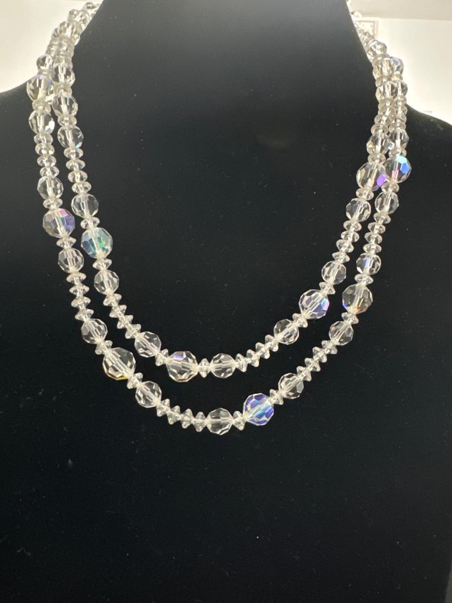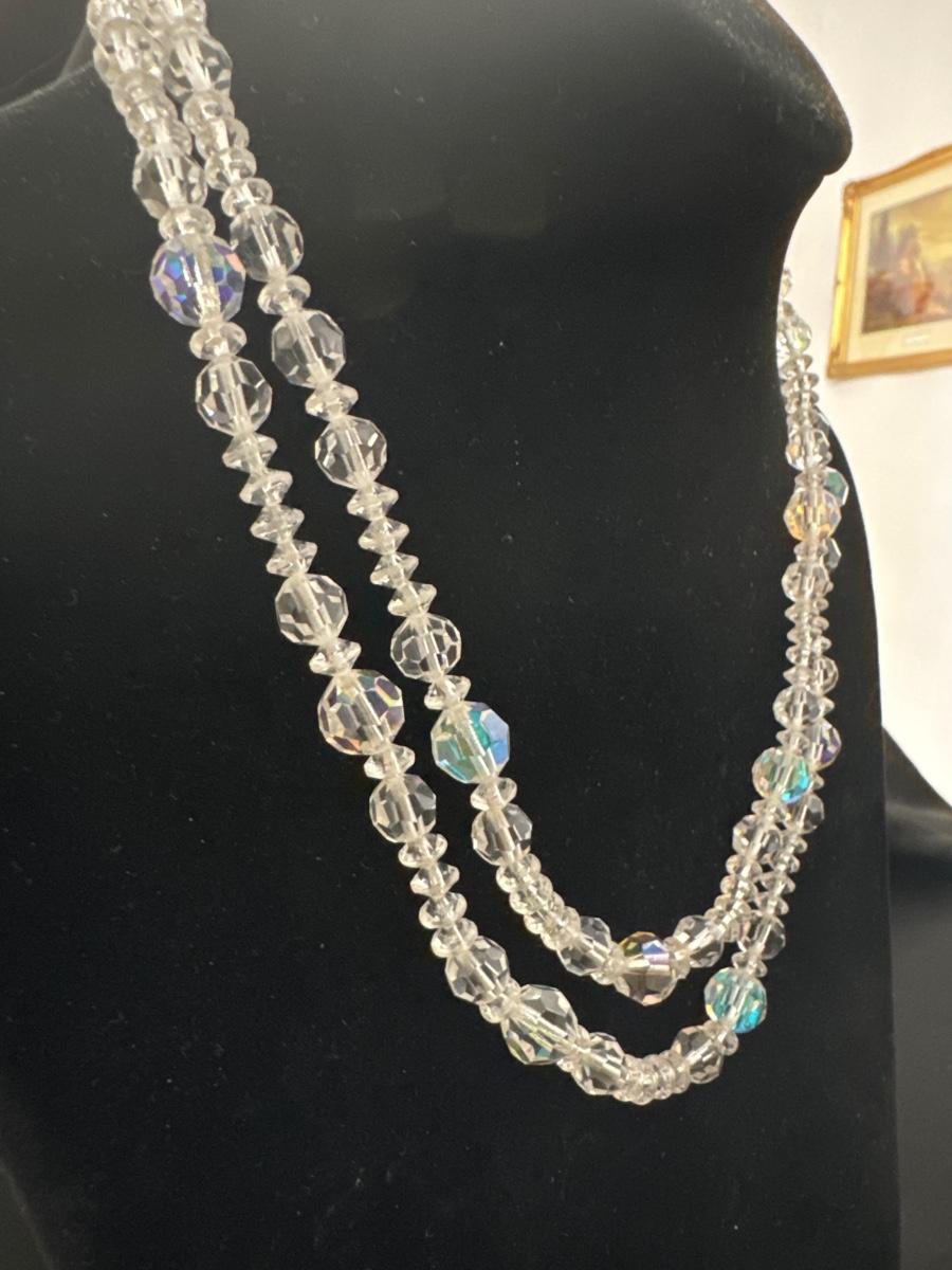 Vintage LISNER crystal Aurora Borealis double strand necklace
