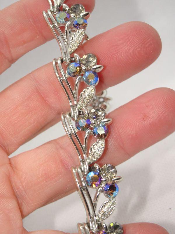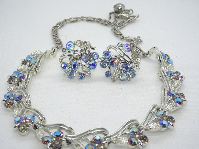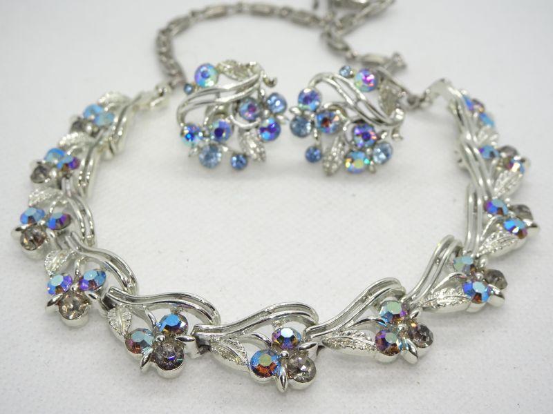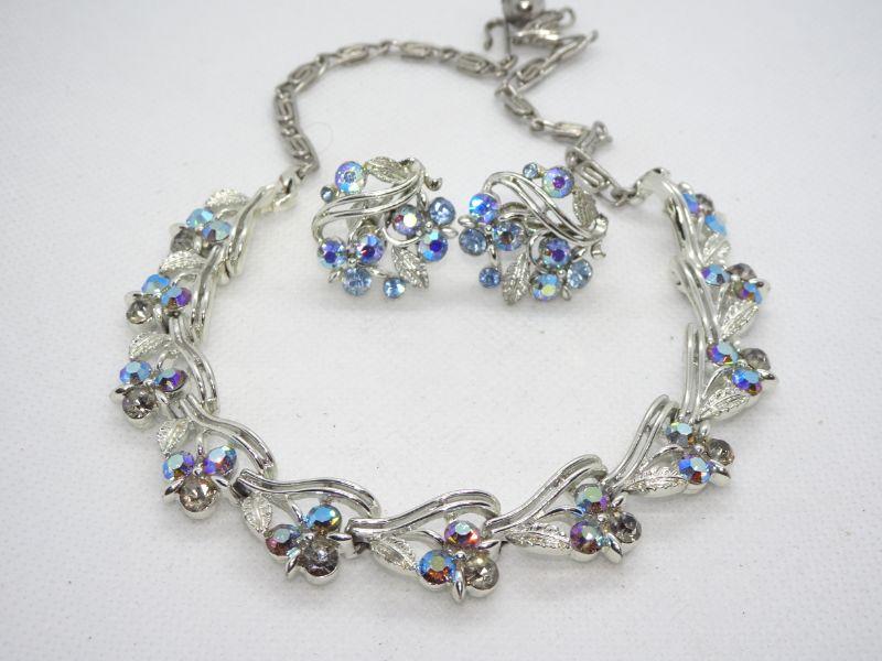 Vintage Lisner Gorgeous Aurora Borealis Link Necklace and Screw on Earrings